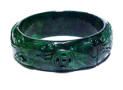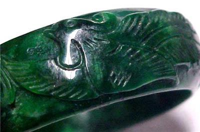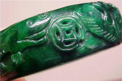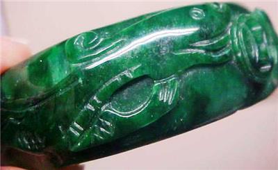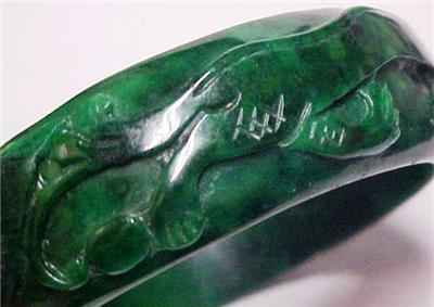 Beautiful Vintage Chinese Emerald Jade Jadeite Carved Bangle Bracelet