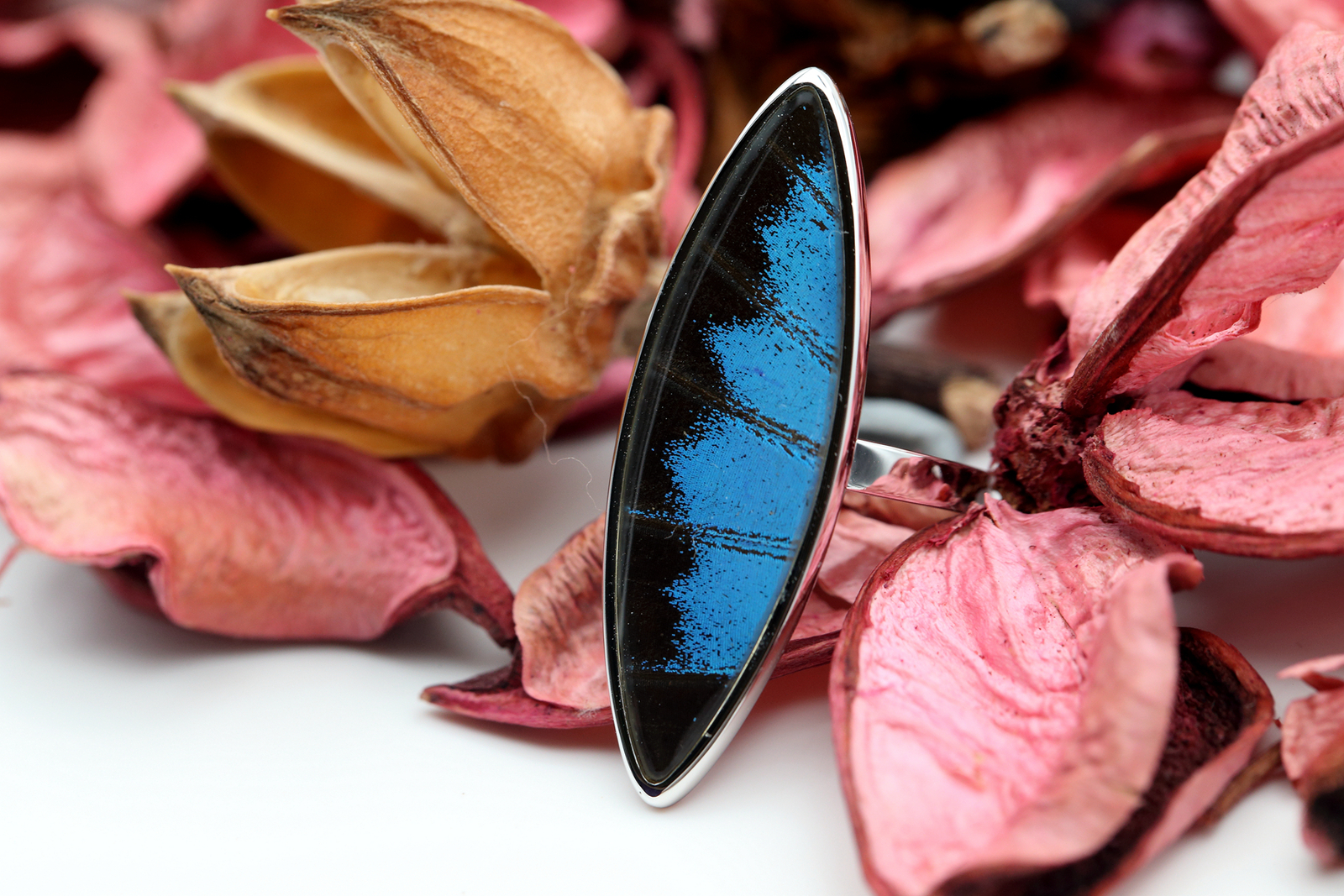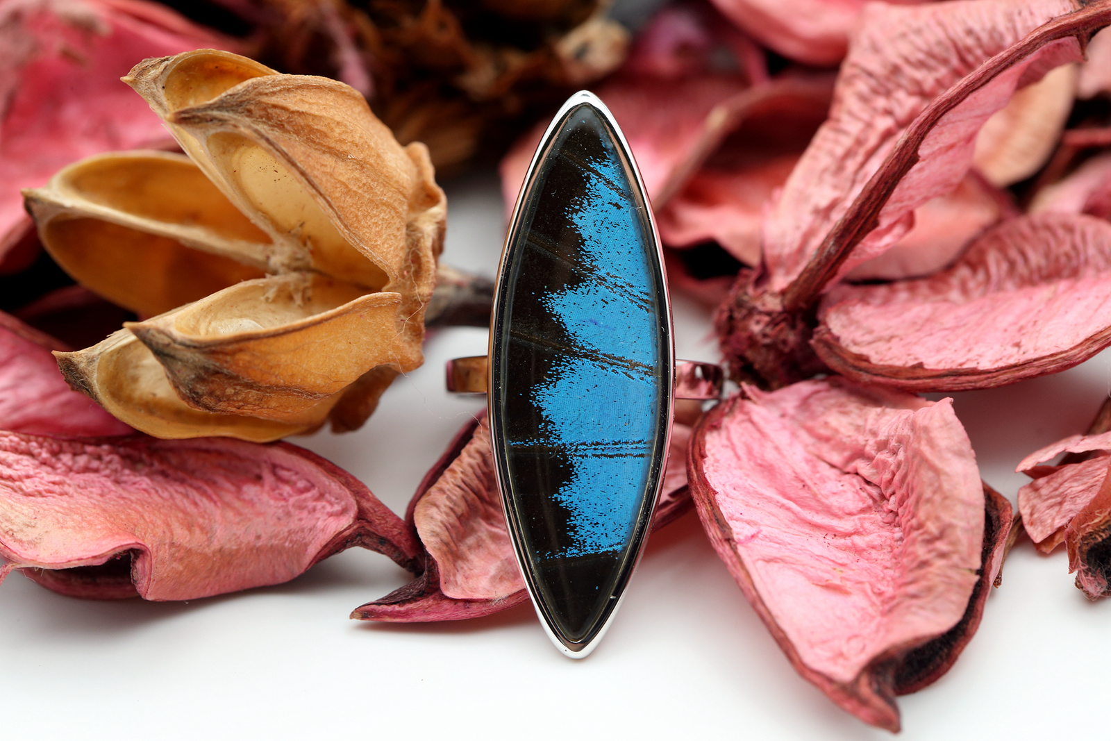 Navia Jewelry Butterfly Wings Papilio ulysses Silver Ring NR-9U-10