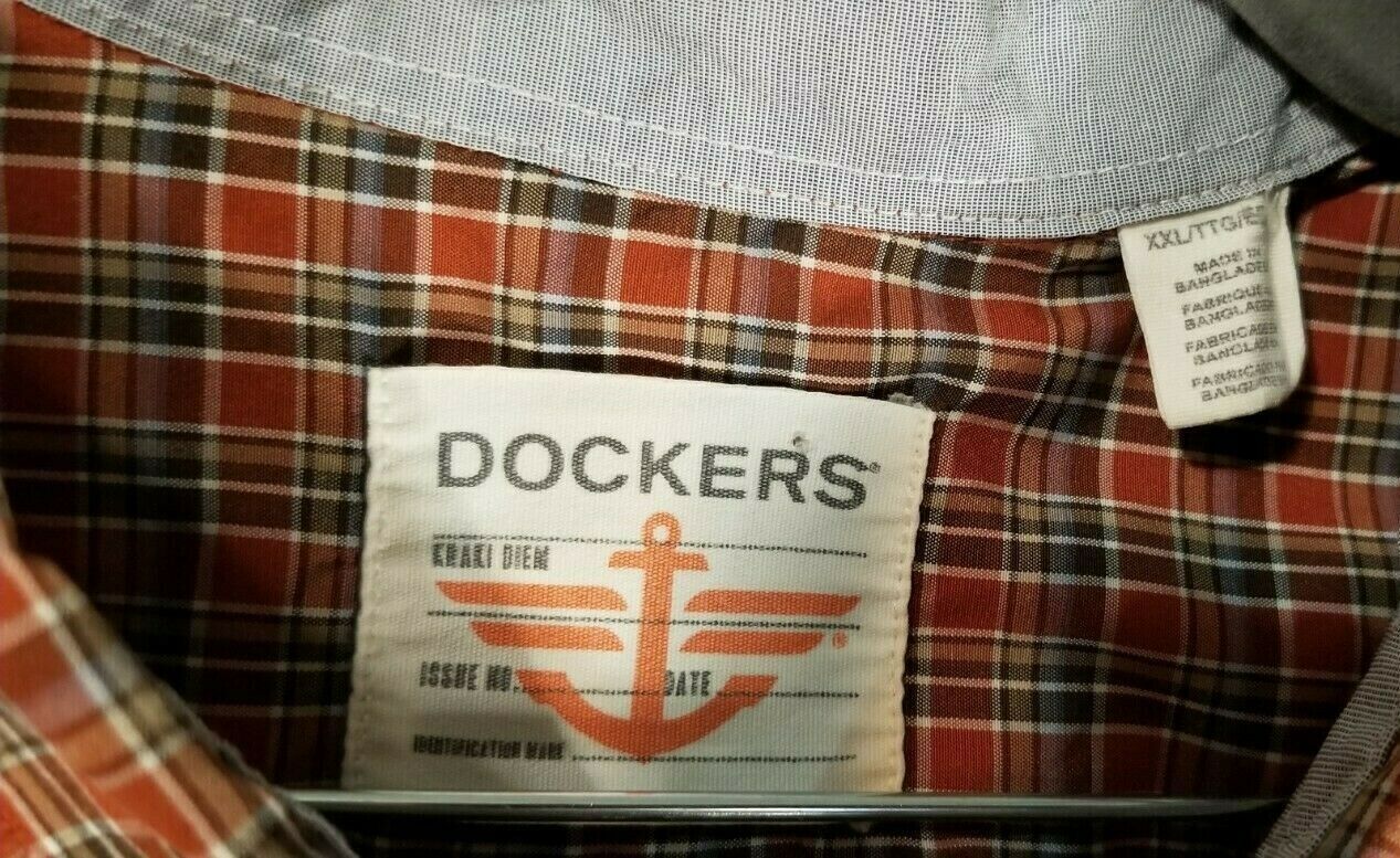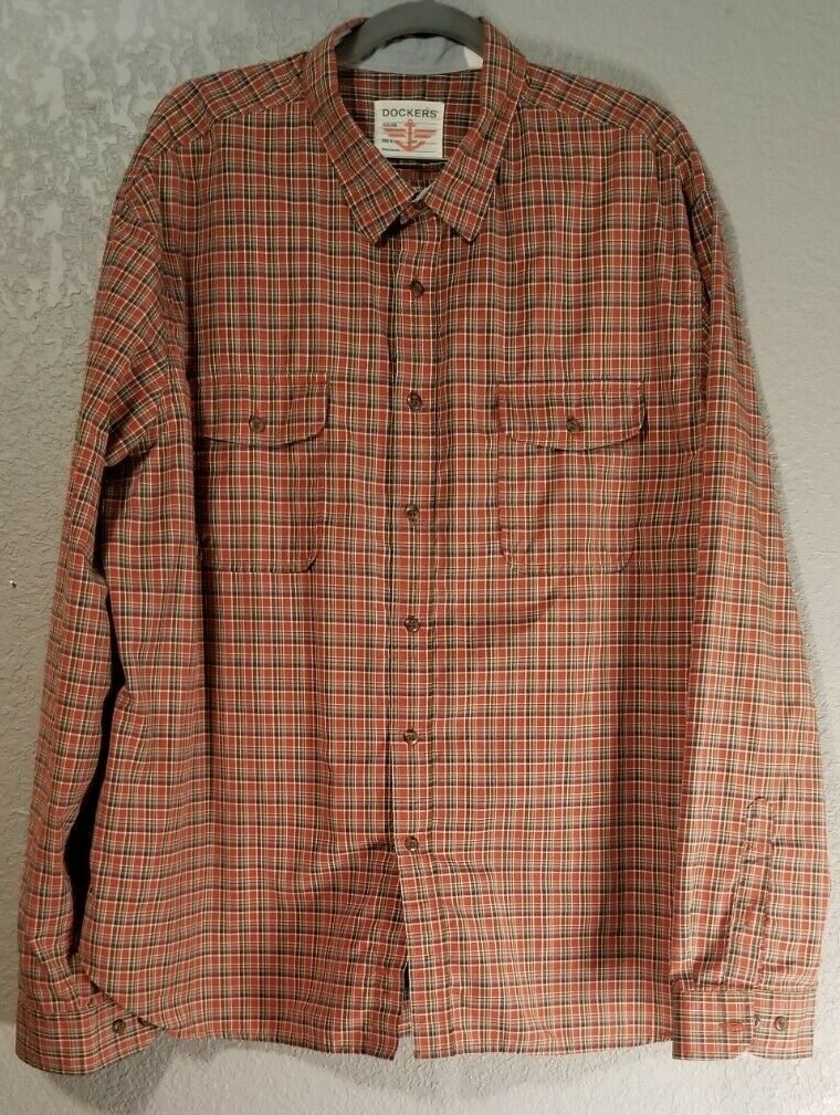 Dockers Long Sleeve Shirt Orange/Brown with Blue Cuffs Cotton/Poly XXL. Condition is Pre-owned. Shipped with USPS First Class Package. bin2