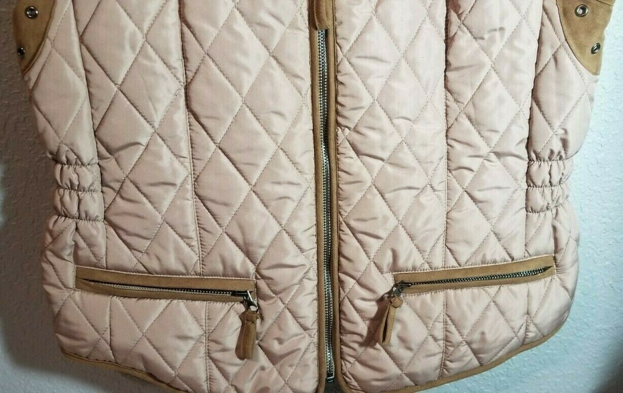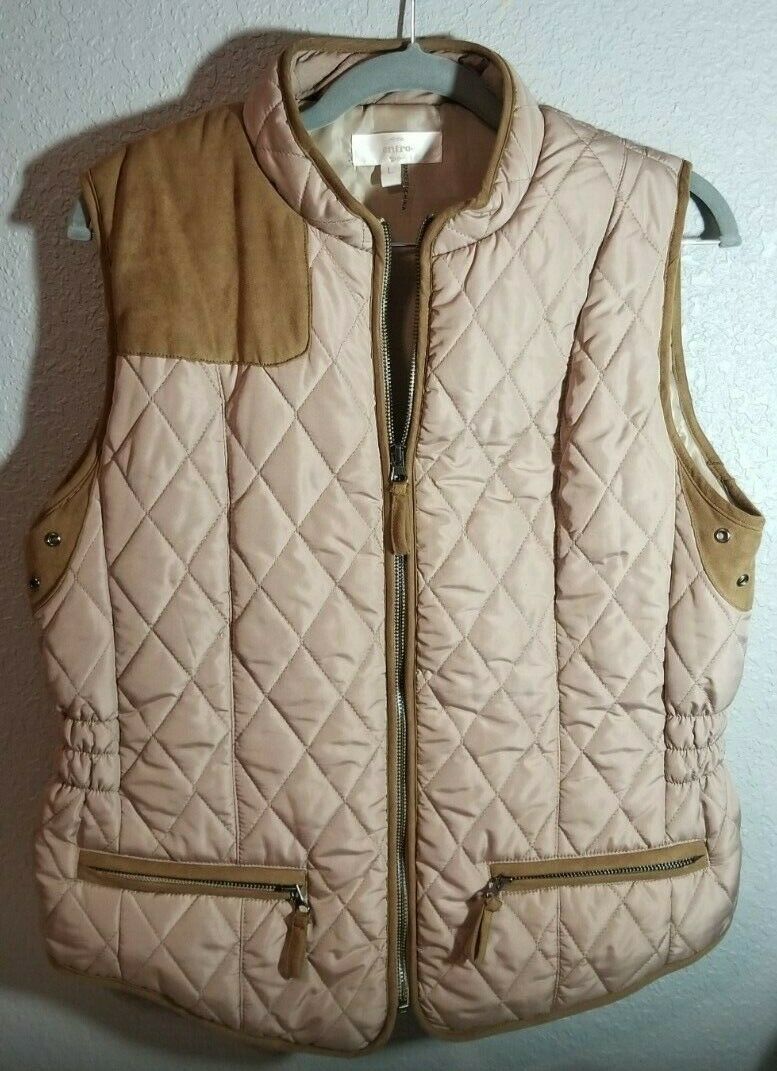ENTRO Women L Quilted Vest Full Zip Lightweight Zip Pkts Adjustable Strap back