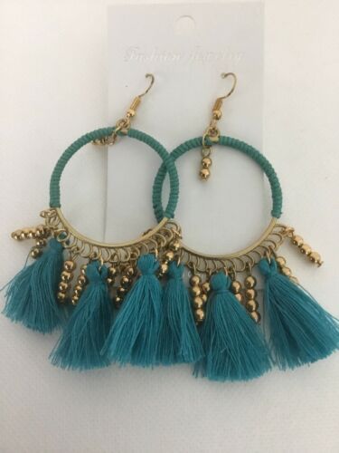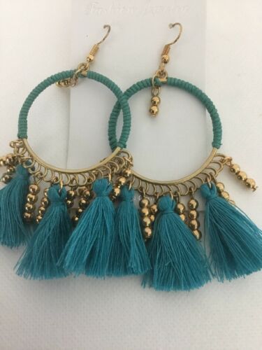 Blue Turquiose Gold Tone Fashion Tassle Earrings NWt