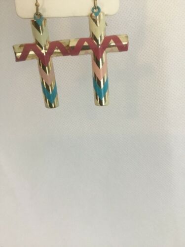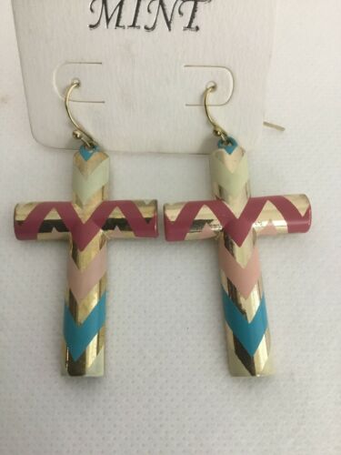 Chevron Design Fashion Jewelry Cross Earrings Gold Tone By Mint NWT
