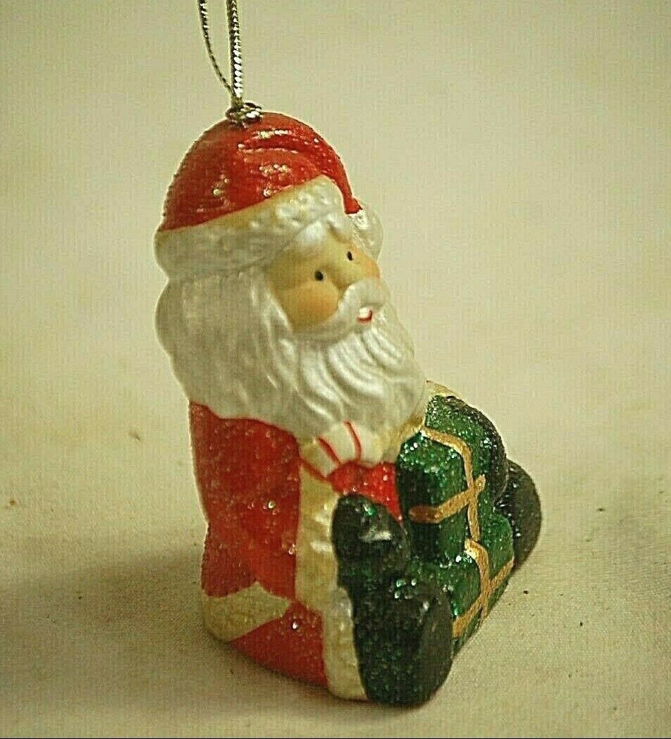 Ceramic Glitter Christmas Tree Ornament Santa Claus w Xmas Present Gifts