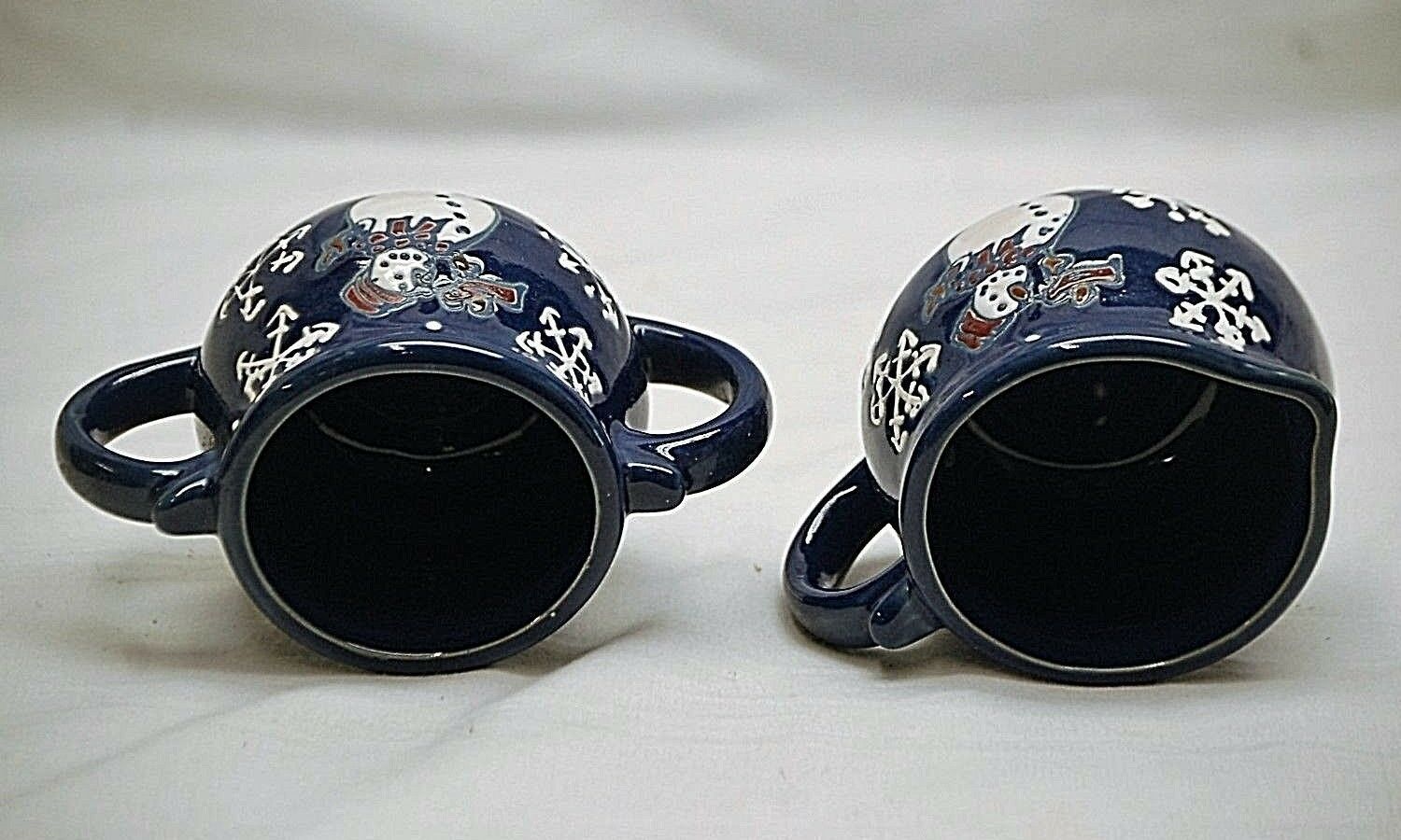 Classic Blue Open Sugar Bowl & Creamer w Snowman & Snow Flakes Kitchen Tool Xmas