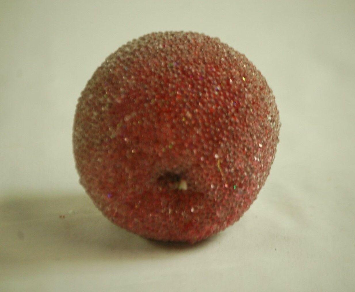 Old Vintage Sparkly Red Apple Shiny Beaded Christmas Ornament Bowl Display MCM b