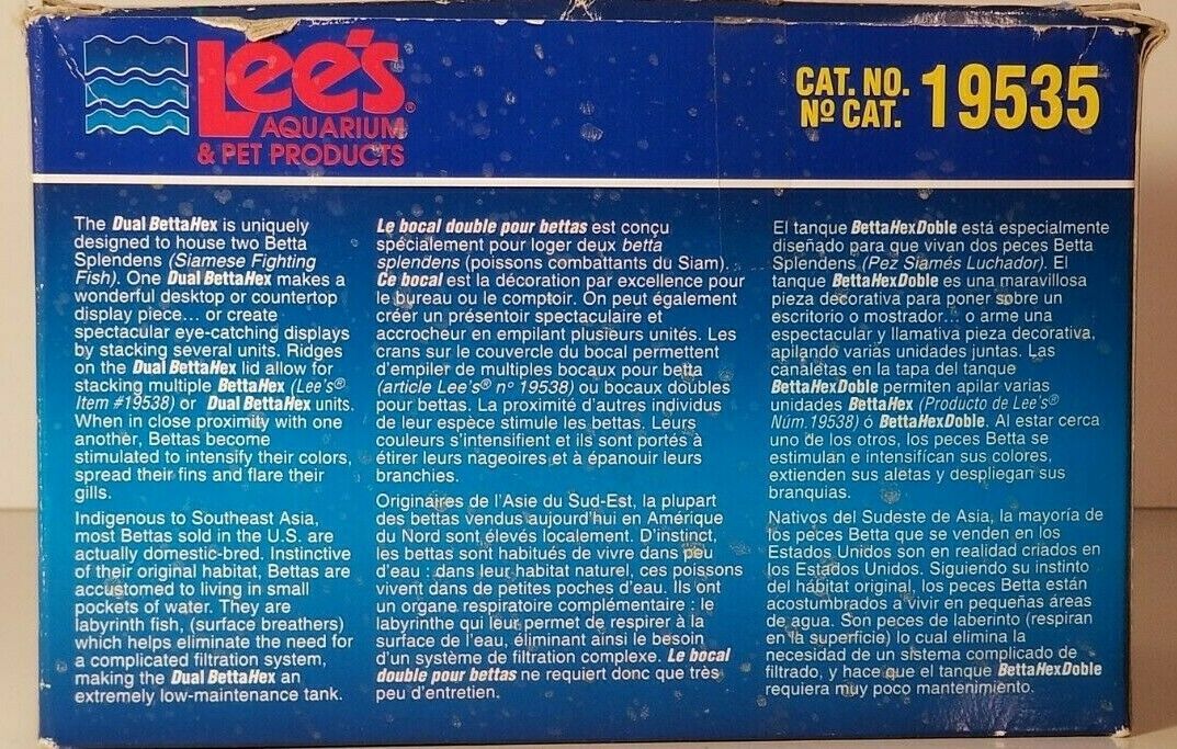 LEES BETTA HEX DUAL BETTA TANK LID REMOVEABLE DIVIDER # 19535 BOX HAS BEEN OPENED BUT NOT USED G2
