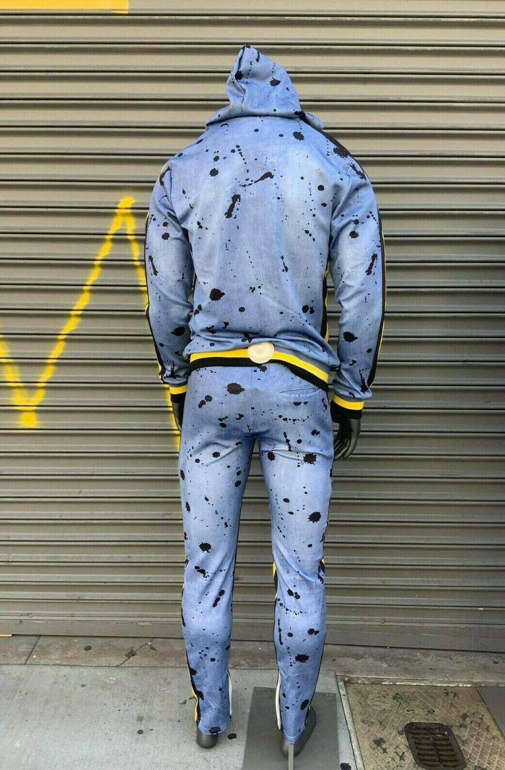 Men's Mid Blue Bleached | Black | Yellow Drawings All Over Fashion Tracksuit