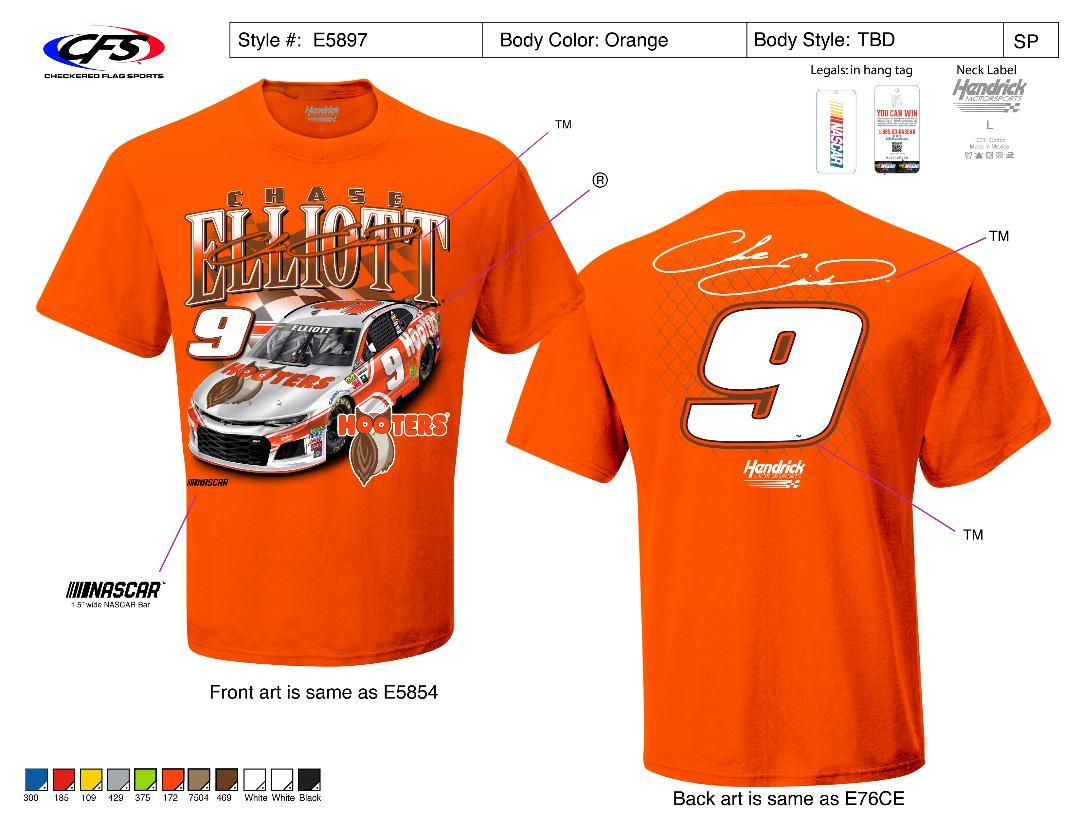 Chase Elliott #9 HOOTER'S Orange Extra Large Tee Shirt