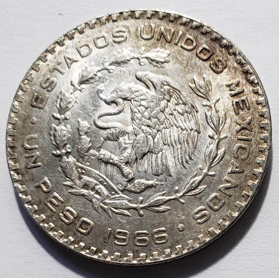 Mexico 1966 Un Peso silver Mexican coin. Circulated.