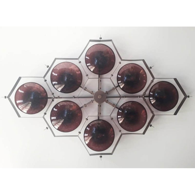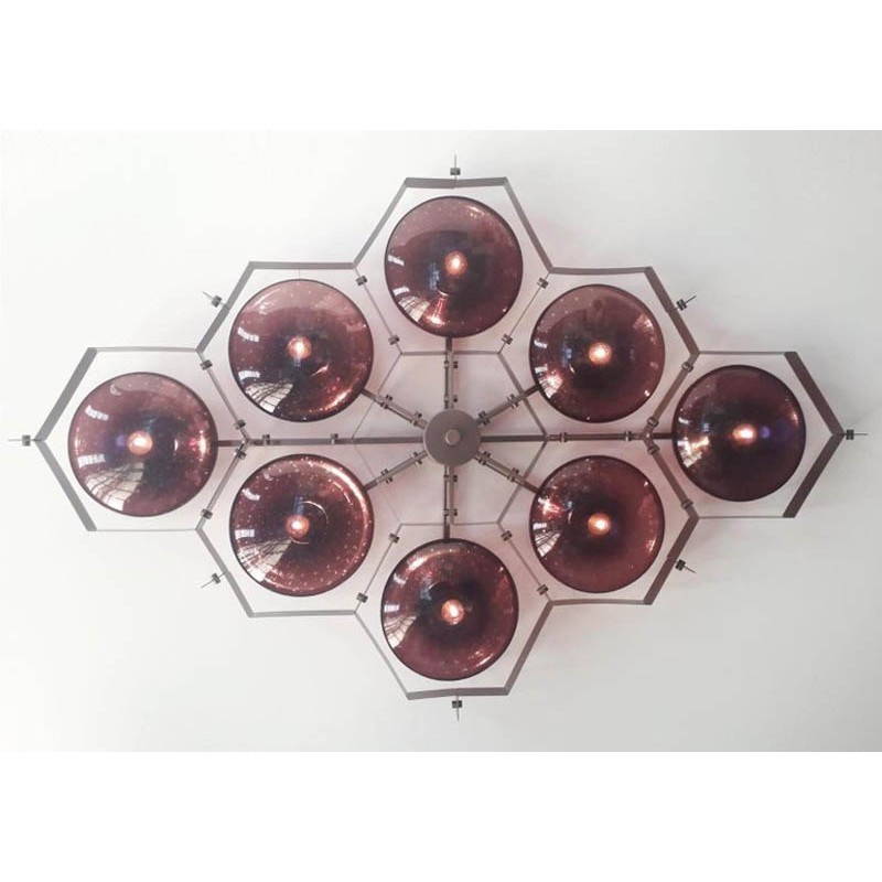 When decorating a room, we don’t always think of lighting solutions first, but they are an important part of every ensemble. Capturing attention in a way other fixtures can’t, chandeliers make a statement in any interior design without stealing valuable floor space. Italian modern Murano flush mount is shown in amethyst Murano glass with carefully blown bubbles within the glass using Bollicine technique and brushed nickel metal finish. These unique shapes and colors can be only created using traditional hand-blown glass techniques. Still keeping the same goal in mind: to offer a vast choice, unique, decorative, and stylish the "Beehive" is a sleek and ultra-modern interpretation of a flush mount fixture. At Alan Mizrahi Lighting Design, we especially emphasize exclusive creations, made by designers at home and abroad. No mass products, but one by one characteristic designs that offer you the possibility to add your own unique touch to your interior.