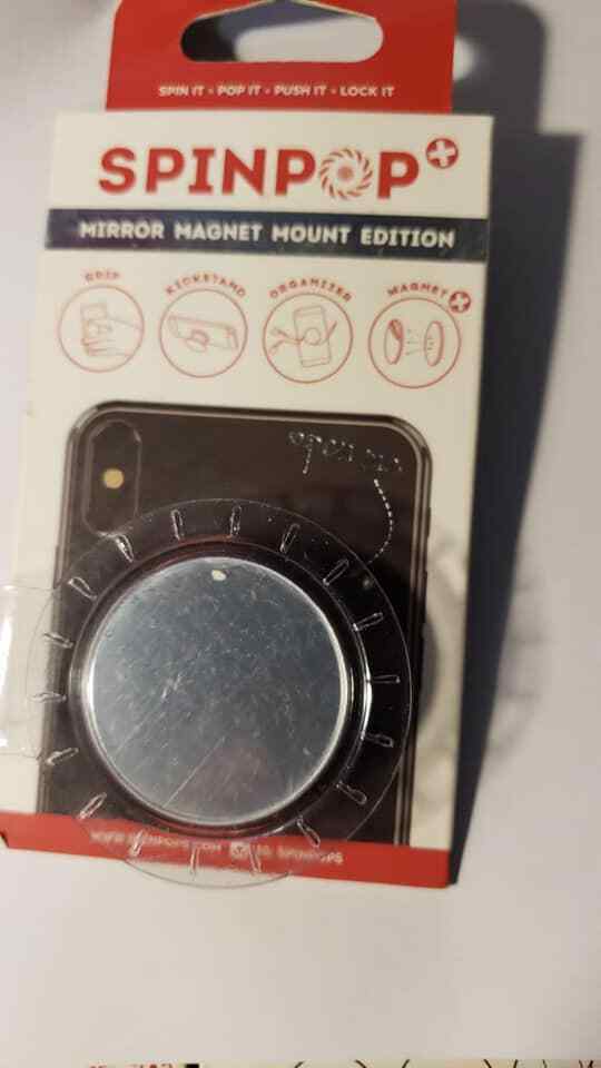 Spinpop Collapsible Grip And Kickstand For Phones And Tablets - Mirror Magnet Car Mount, Silver