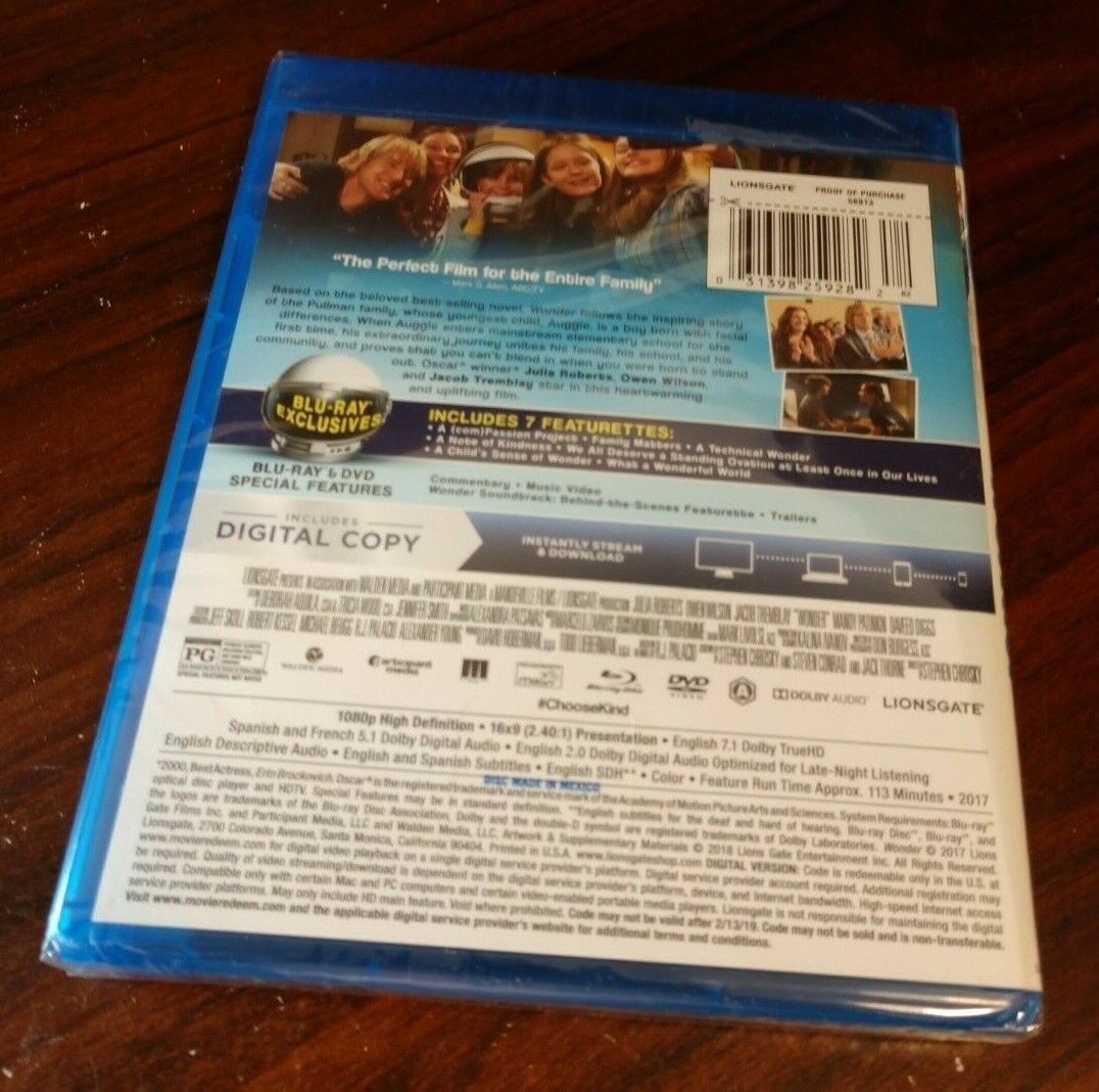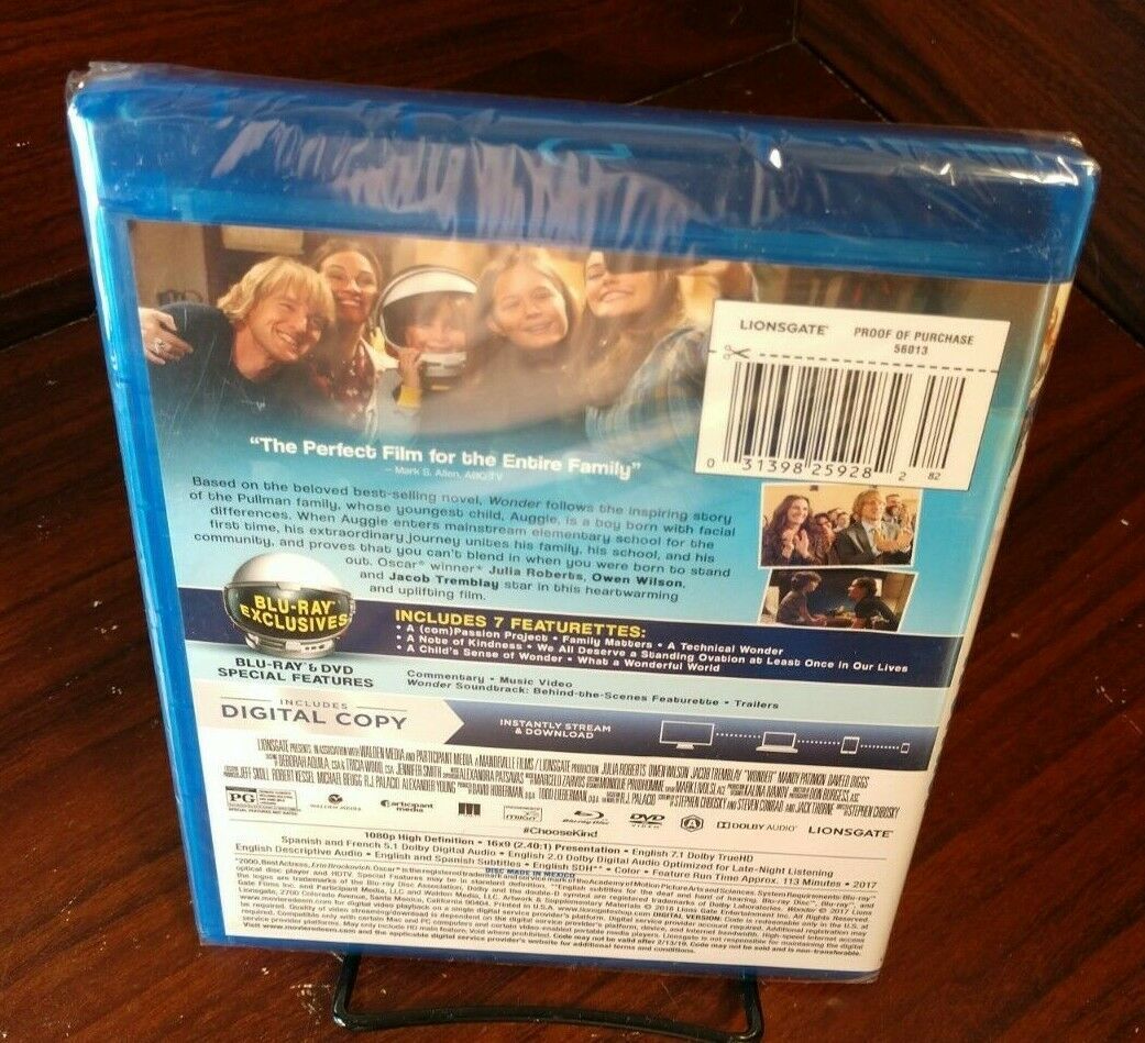 Wonder (Blu-ray+DVD-No Digital)-Discs Unused-Free Shipping w/Tracking