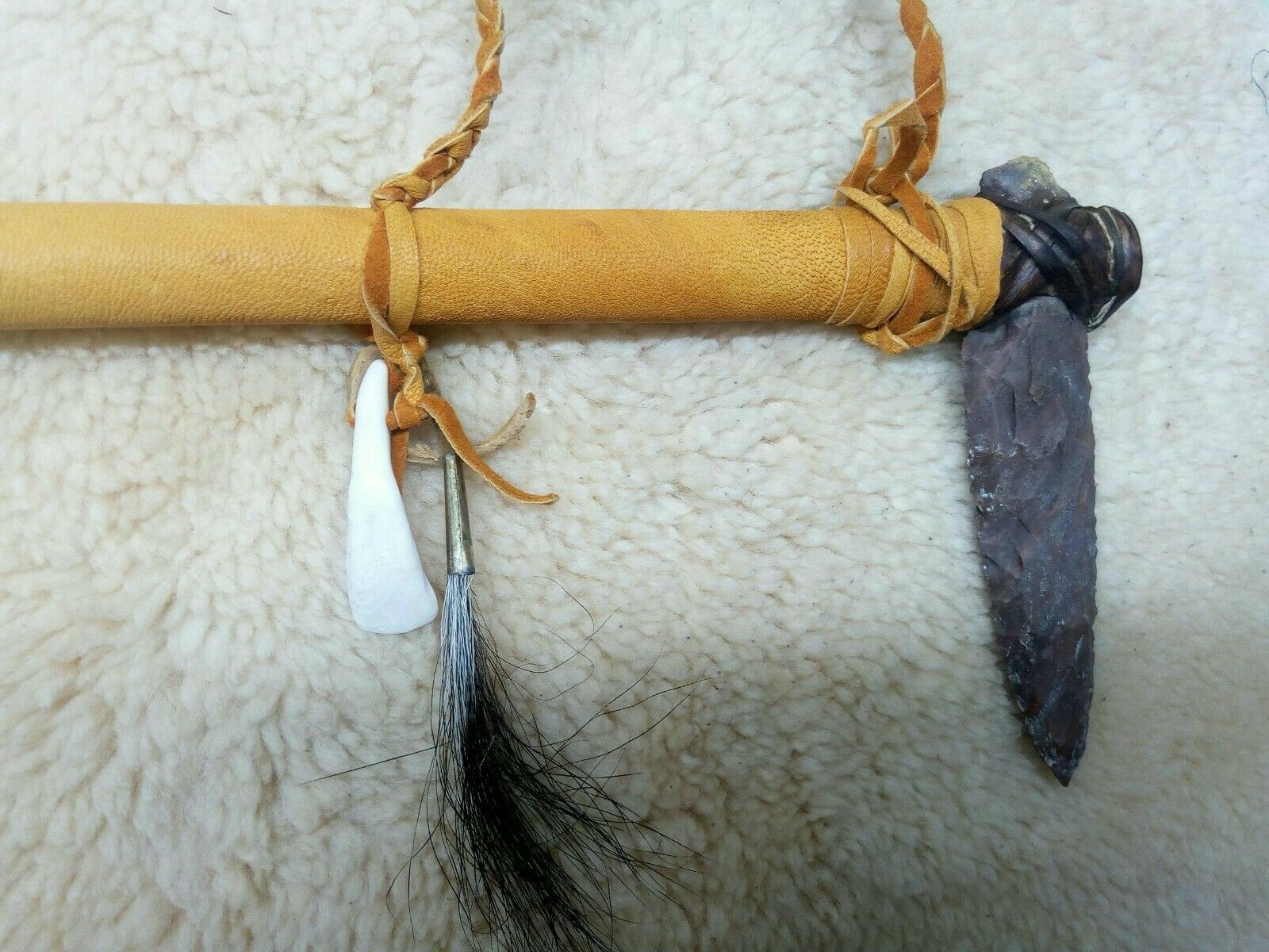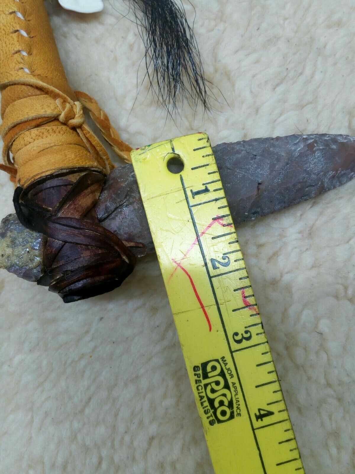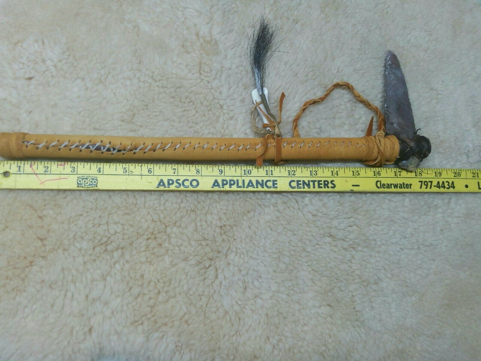 agate stone tomahawk.deer buckskin wrapped, wood hand grip, hand stitched. rawhide wrapped agate stone. decorated with skunk tail and buffalo tooth. braided strap. plains native american style powwow reenactors black powder. Condition is "New". Shipped with USPS Priority Mail.