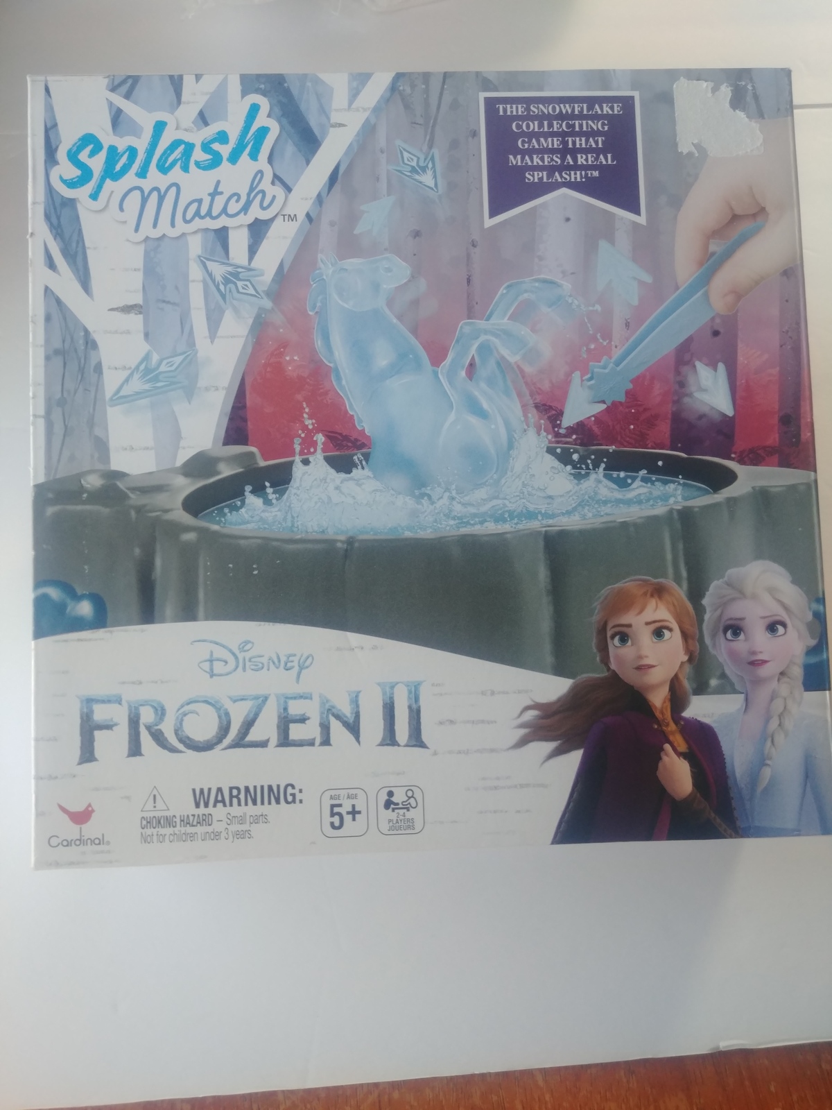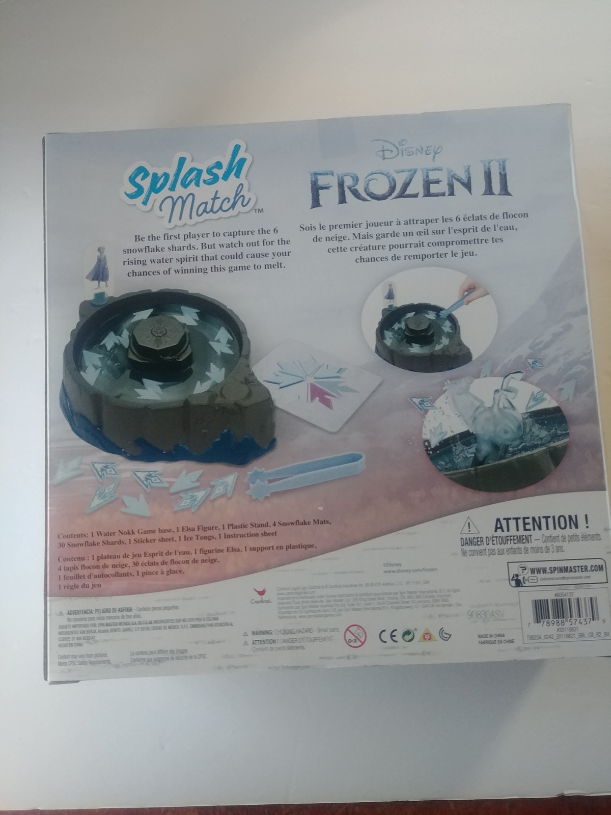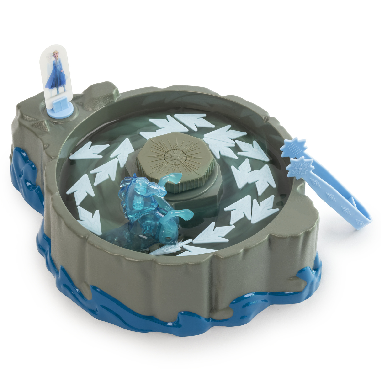 Elsa has set the wind whirling, shards of snowflakes swirling on the angry sea. Who will be the first player to capture the six Snowflake Shards needed to complete the picture on their Snowflake Mat? Turn the motorized Frozen Snowflake to start the timer and begin collecting the Snowflake Shards. Every player takes a turn picking up Snowflake Shards with the included ice tongs. But be careful, because when the Water Spirit rises, your turn is over! Will the rising water spirit cause your chances of winning to melt? There’s only one way to find out. Let the Splash Match begin!