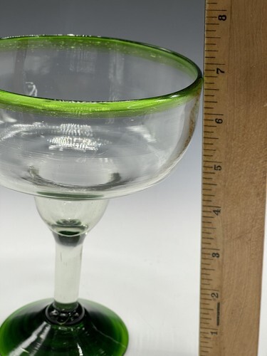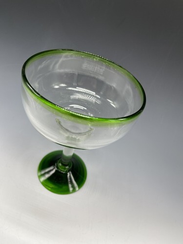 (1 ) Large Mexican Hand Blown Glass Margarita Green Clear 12oz