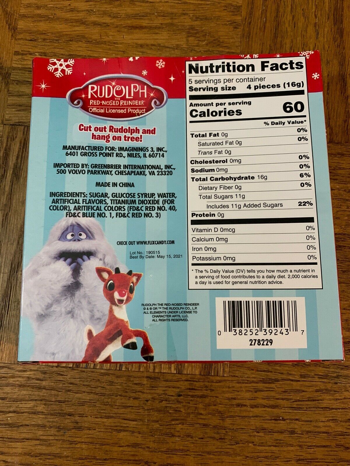 - (1) Rudolph Mini Candy Canes, 20 pieces, blue raspberry and cherry flavors