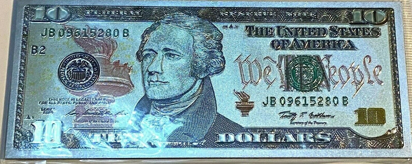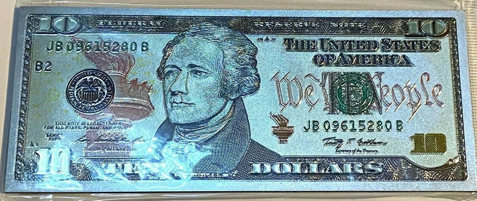 You are Buying a Brand New And factory Sealed $10 Bill Fridge Magnet Silver Foil Magnet Money Magnetic Fake Money That Looks.