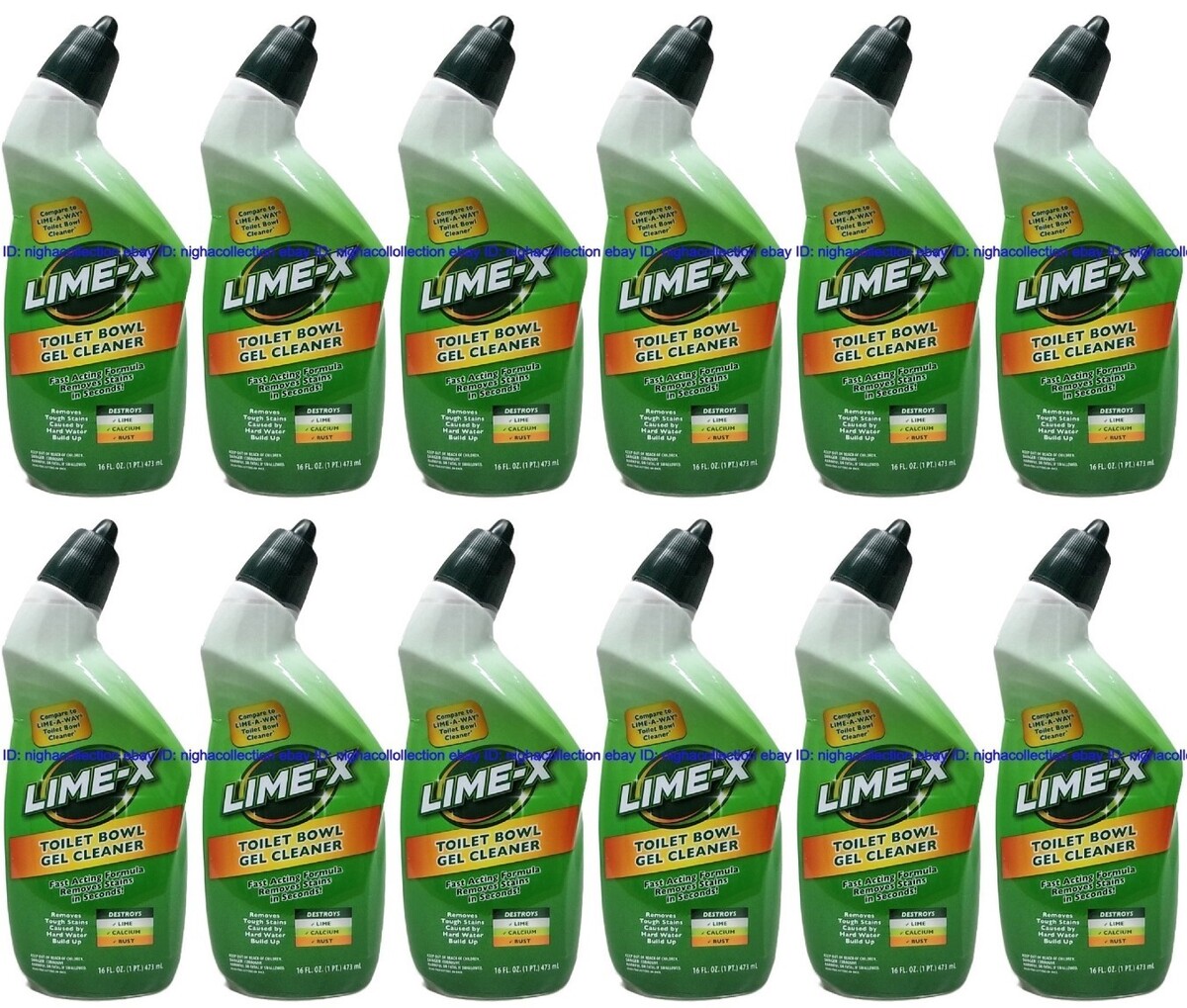 - ( 12 ) Lime-x Liquid Toilet Bowl Gel Cleaner, Removes Lime Calcium Rust 16 oz Ea