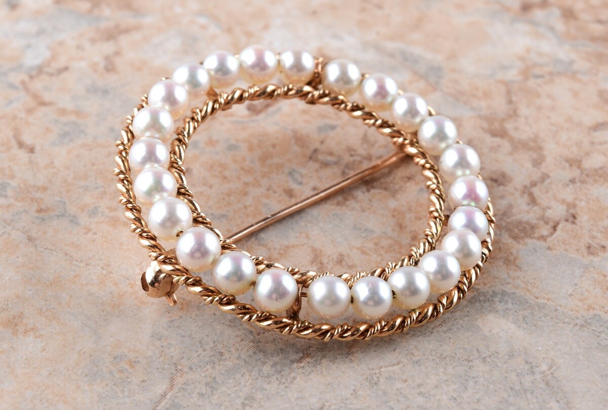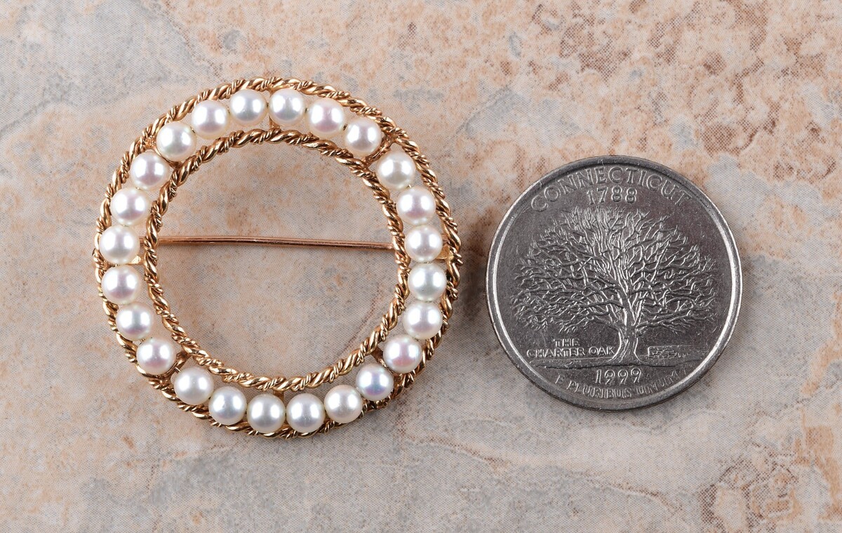 - *14K Yellow Gold Mother of Pearl Round Pin Broch