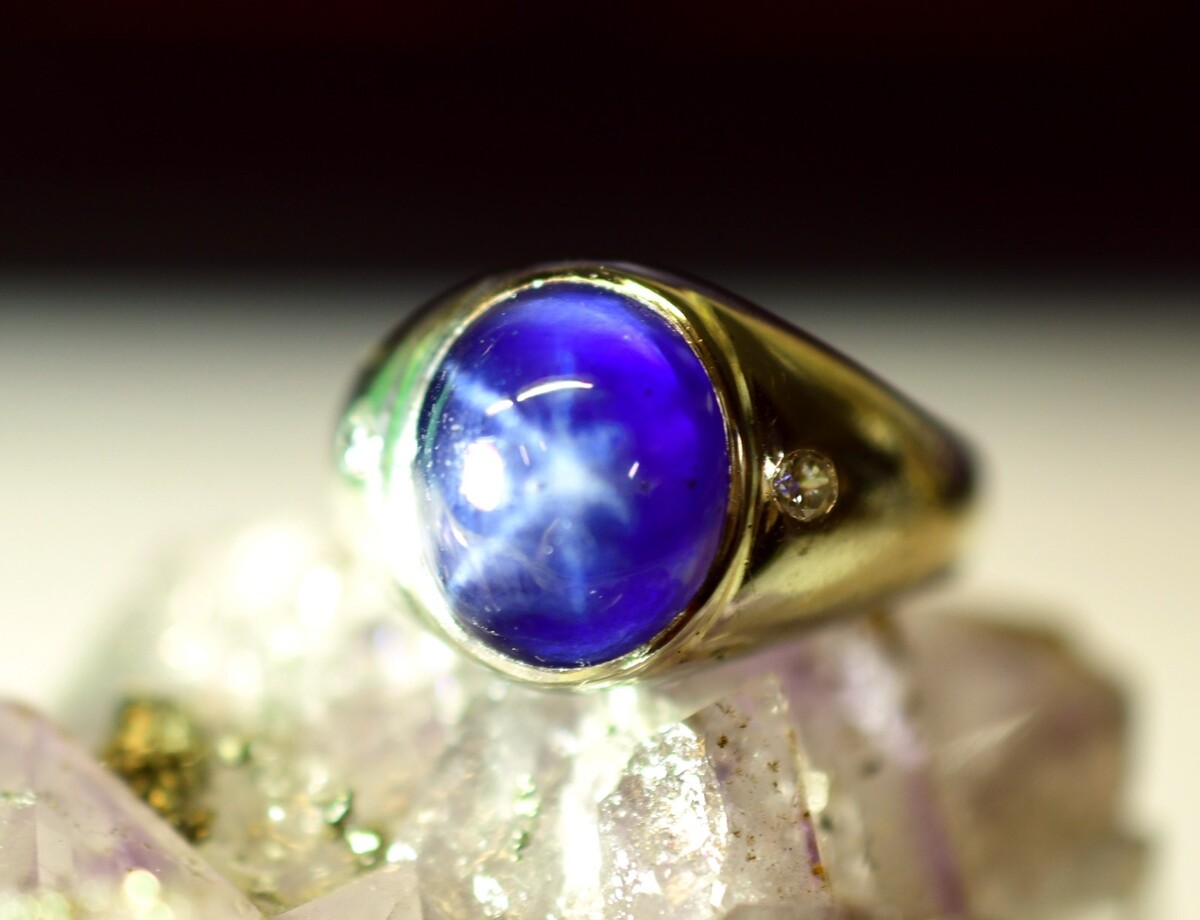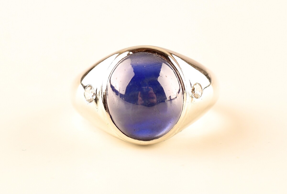 - *14k White Gold Blue Star Sapphire (5mm) w/ Diamond Accent Ring Size 7.75