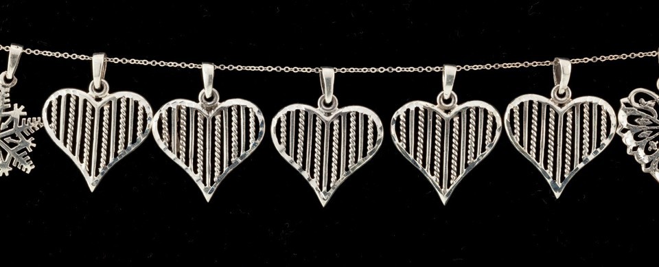 (5) Heart Pendant with vertical bars and wire design, 23 mm wide