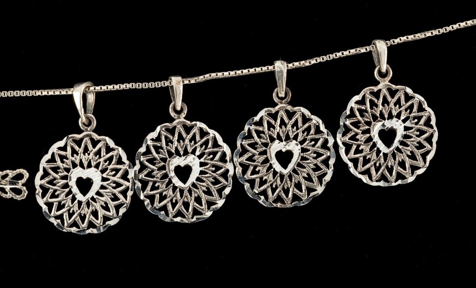(4) Diamond cut Round Heart Pendant, 22 mm wide
