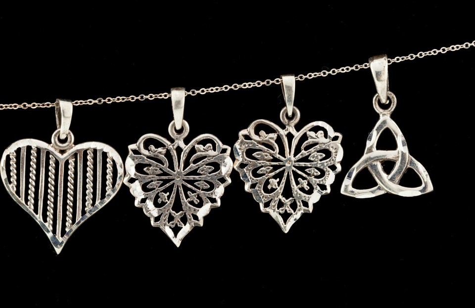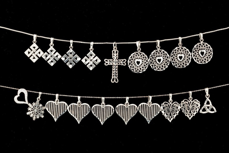 - (19) Sterling Silver Collection of Celtic, Heart, Cross & Snow Flake Pendants