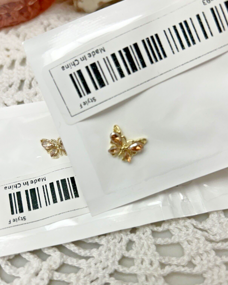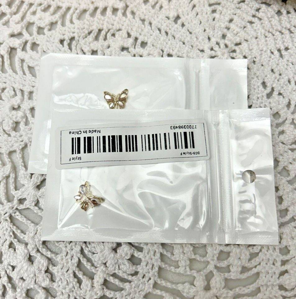 - (2) 3D Butterfly Nail Charms - Rhinestone Metal Nail Art Studs