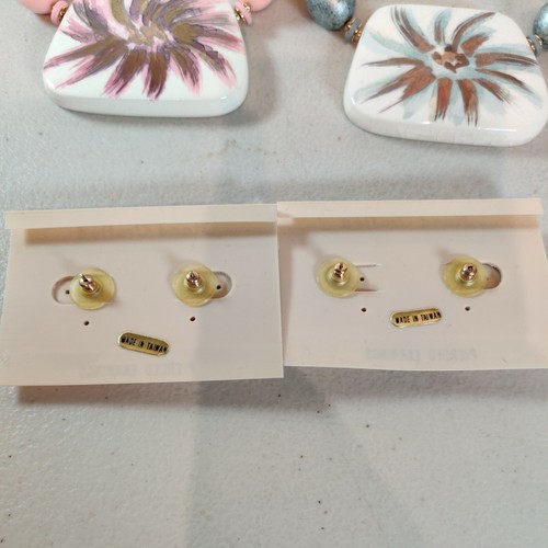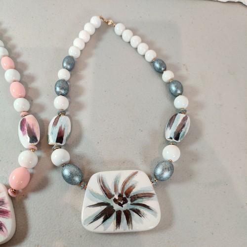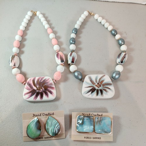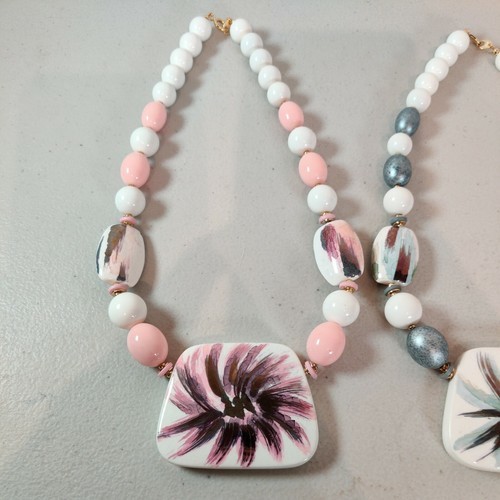 - (2) Colorful chunky statement necklaces painted plastic beads & (2) Earring Pair