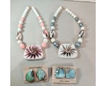 (2) Pink Green Blue Colorful chunky statement necklaces painted plastic beads (2) Earring Pair. Shipped with USPS First Class.
