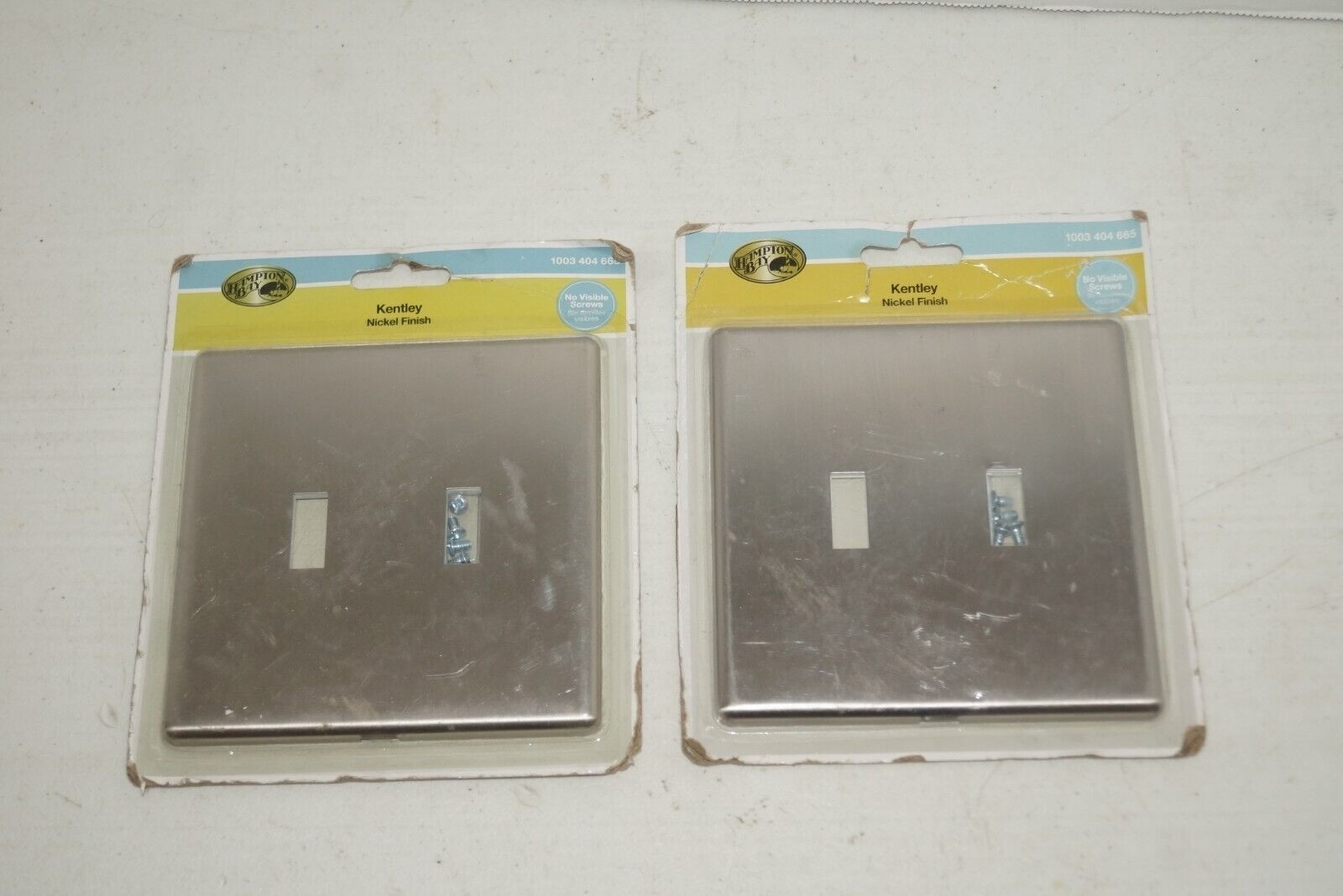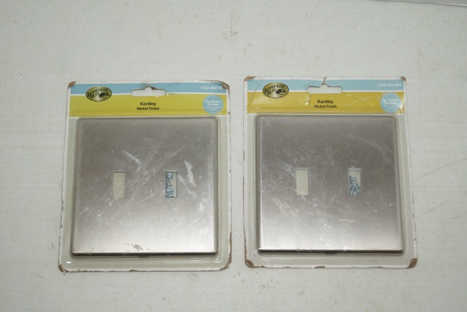 - (2) Hampton Bay Kentley Screwless 2-Gang Toggle Steel Wall Plate Brushed Nickel