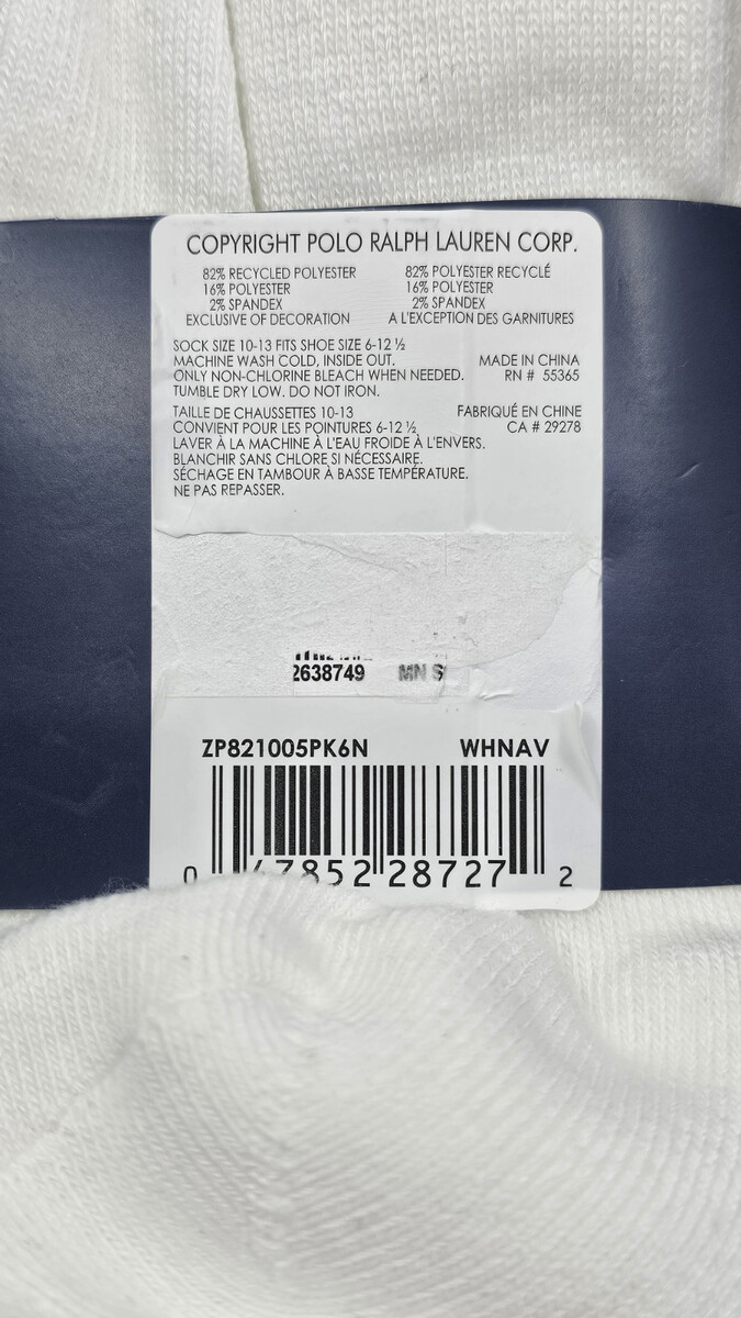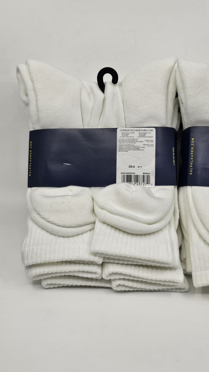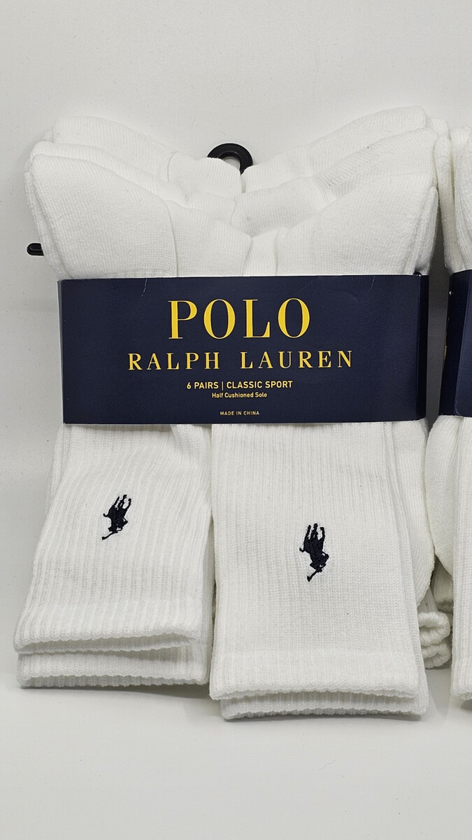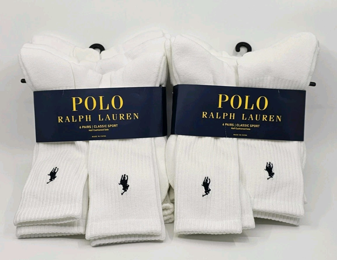 - (2) Packs Polo Ralph Lauren Mens White Classic Sport Socks Size 10-13, 12 Pairs