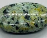 African Turquoise palm stone with soothing tones and inclusions of color. African Turquoise is known as the stone of evolution with its ability to create great change in ones life. Turquoise has been used throughout the ages as a powerful protection stone and may assist courage, love, friendships, healing and is a lucky stone. Seen in image is a 2" long and 1" wide palm stone with colors, shapes, and sizes that will vary. From China