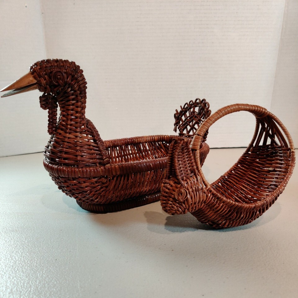 (2) VTG Rattan Wicker Woven Duck Turkey Goose Basket Wooden Beak Small Rabbit. Condition is "Used". Shipped with USPS Priority Mail. Combined Shipping (for USA Customers Only)