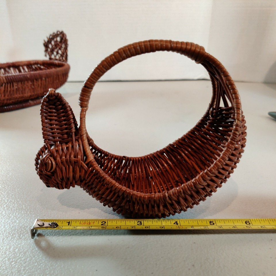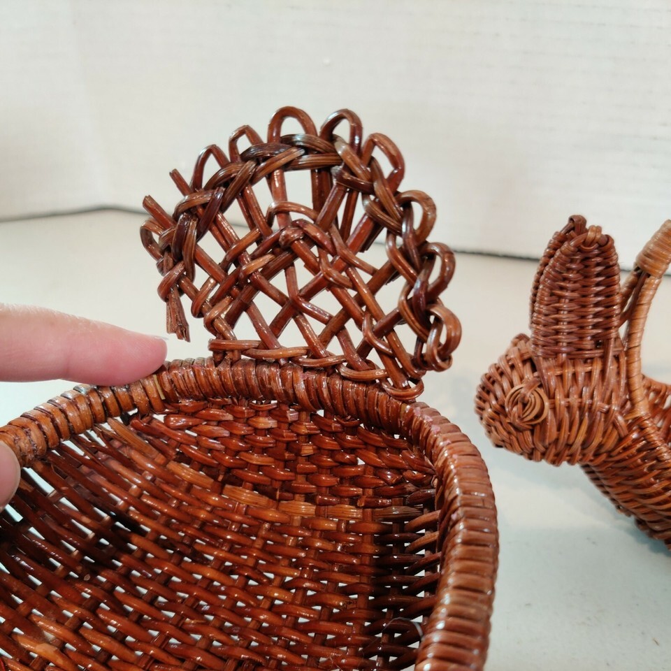 (2) VTG Rattan Wicker Woven Duck Turkey Goose Basket Wooden Beak & Small Rabbit