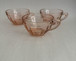 - (3) Anchor Hocking Pink Depression Glass Cups Block Optic Pattern Tea