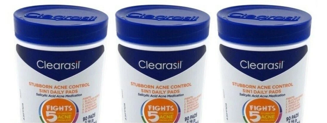 - ( 3 ) Clearasil Fights 5 in 1 Daily Cleansing Pads Stubborn Acne Control 90ct/Pk