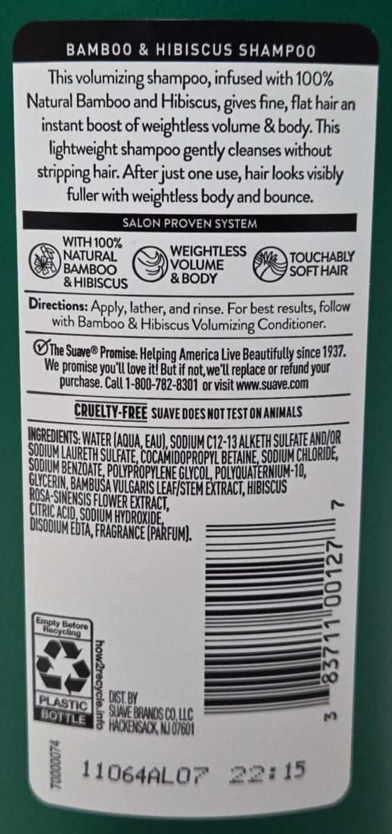 - (3 Pack) Suave - Bamboo & Hibiscus Volumizing SHAMPOO - 12.6 oz