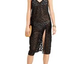 - $34 MIKEN Animal Print Textured Slit Dress V Neck Metallic Cover Up Black Large