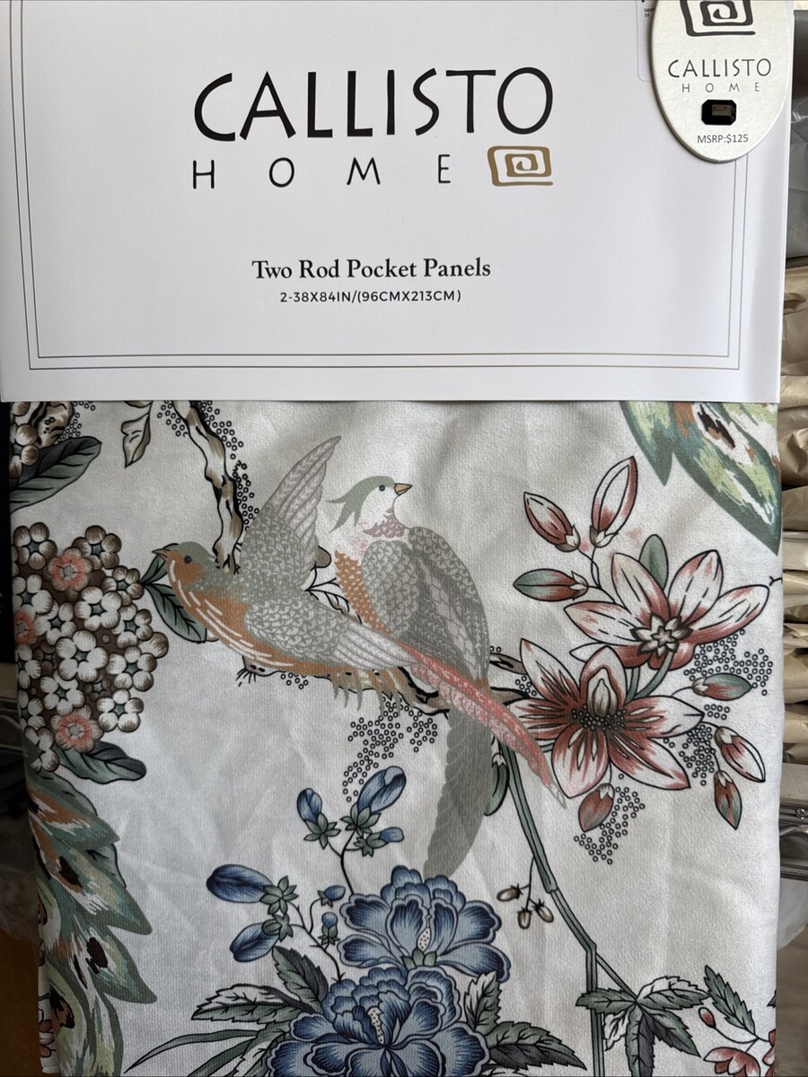 - (4) Callisto Peacock Bird Prints Rod Pocket Window Panels 84” ~New~