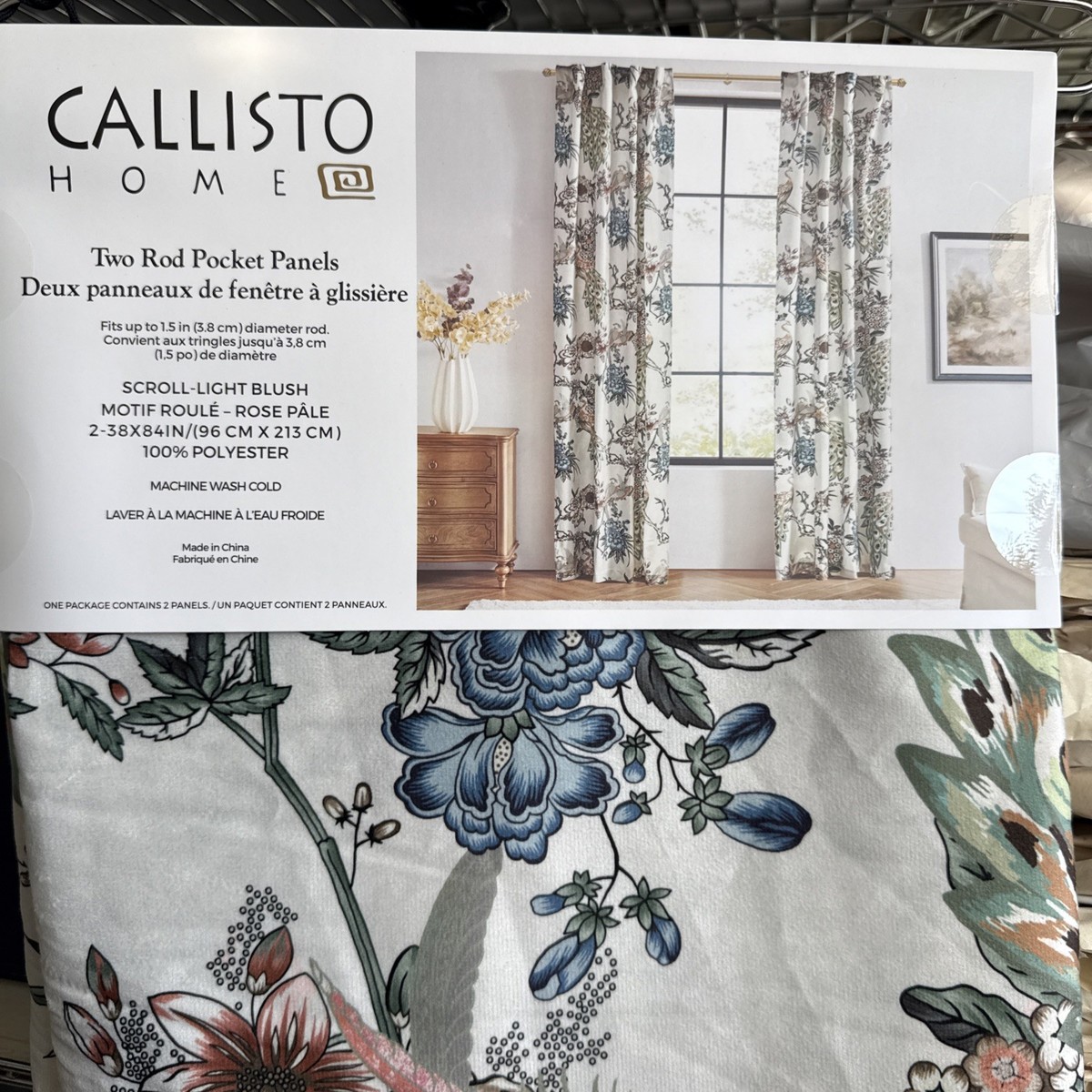 (4) Callisto Peacock Bird Prints Rod Pocket Window Panels 84” ~New~