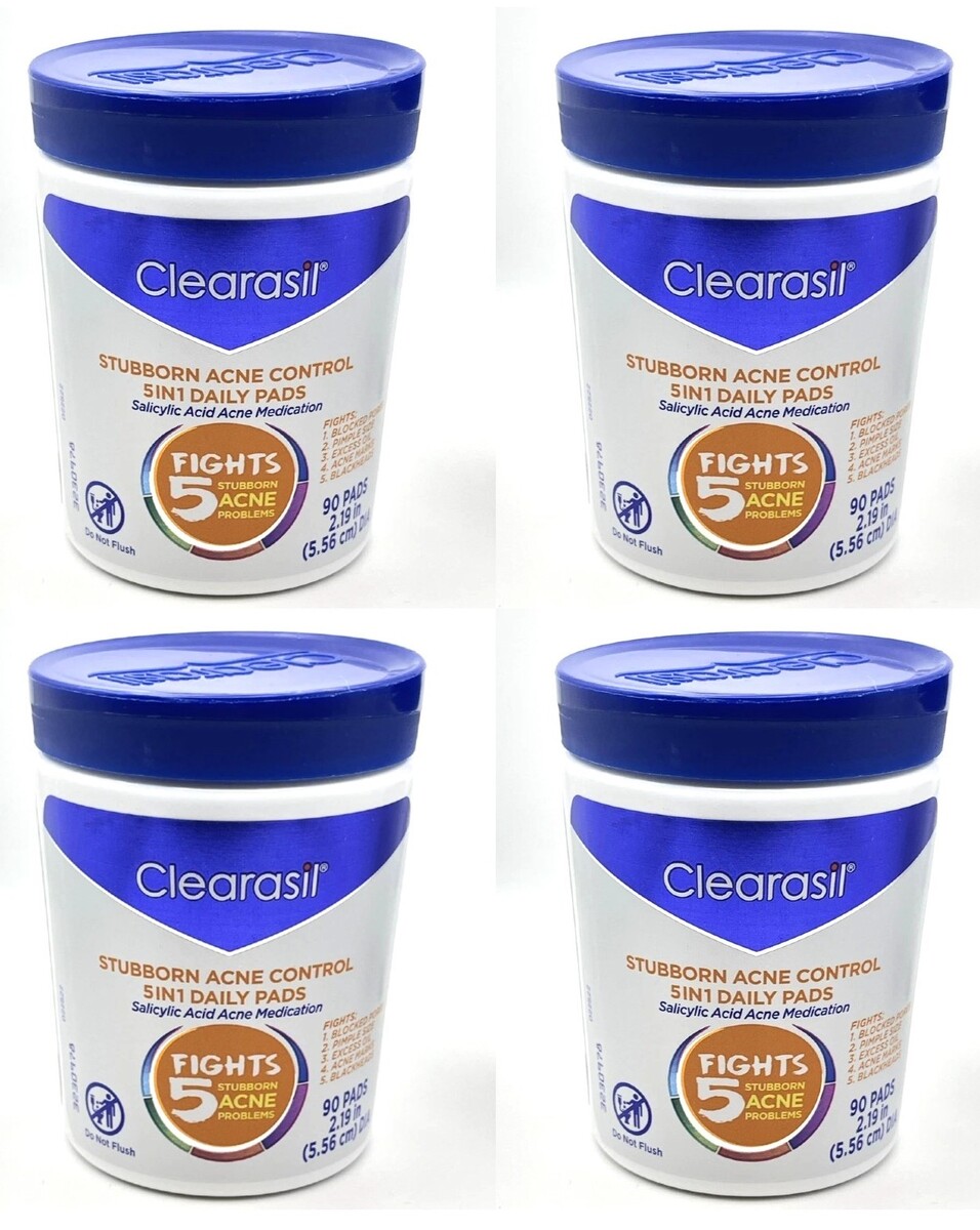 - ( 4 ) Clearasil Fights 5 in 1 Daily Cleansing Pads Stubborn Acne Control 90ct/Pk