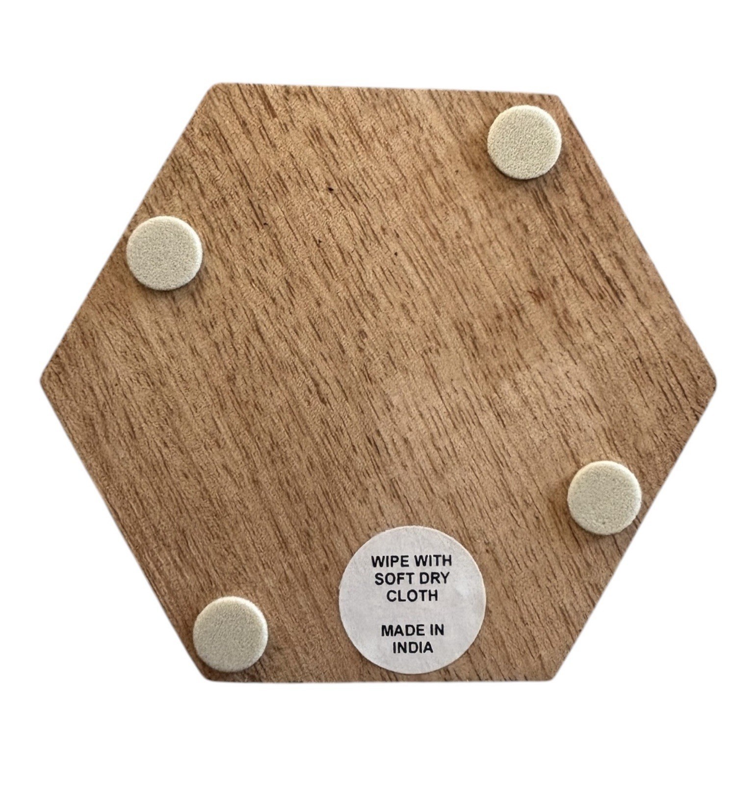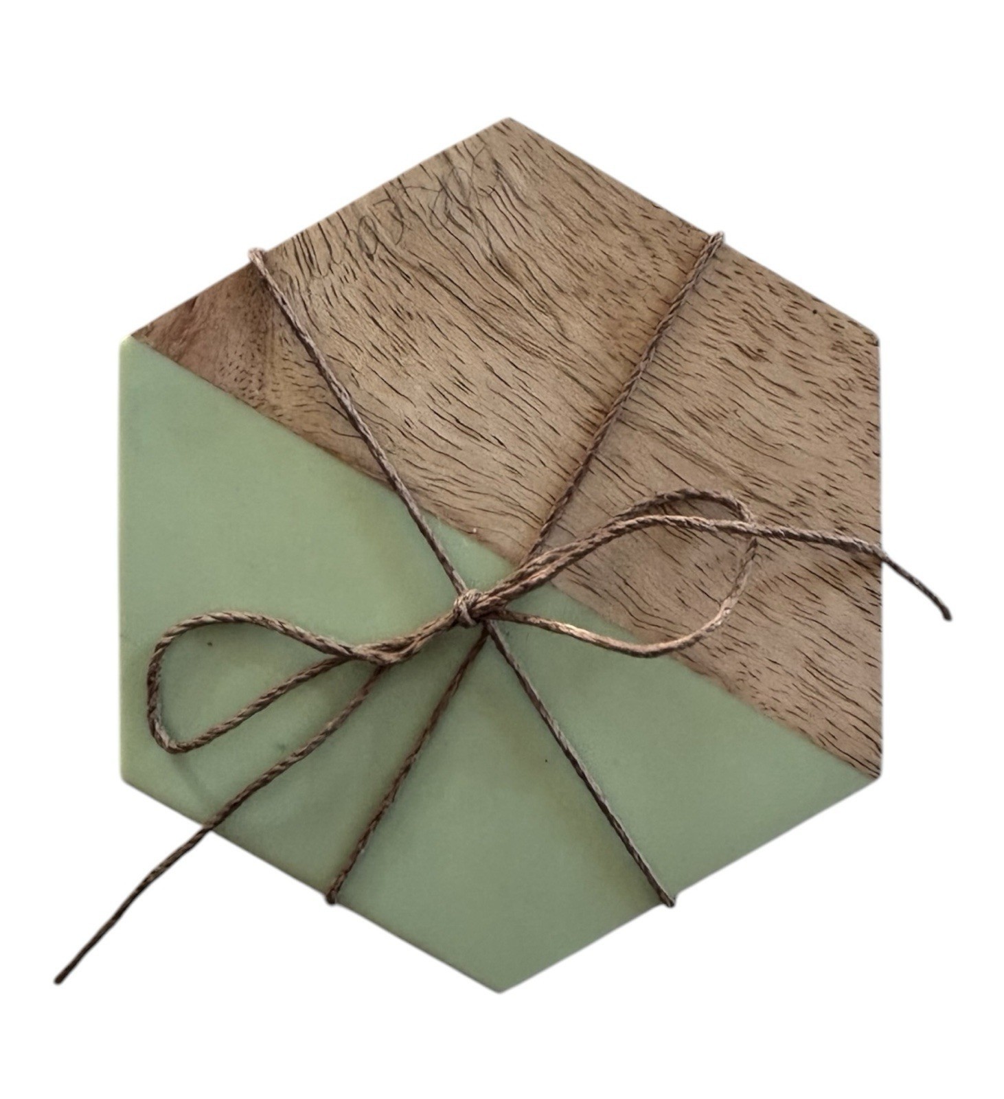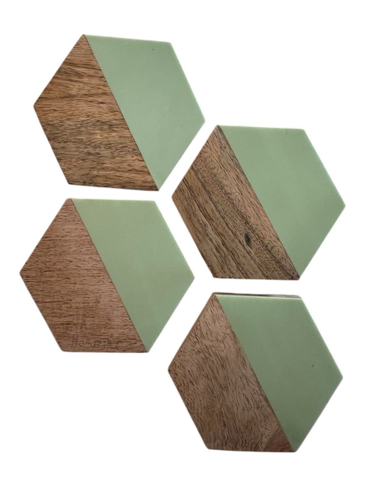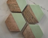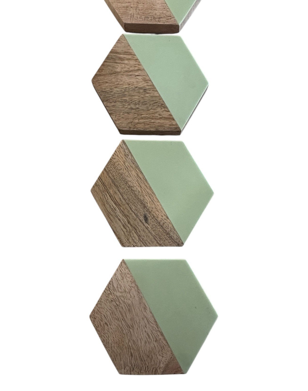 - (4) Set Hexagon Wood Drink Coasters Mint Green Geometric Made in India MCM