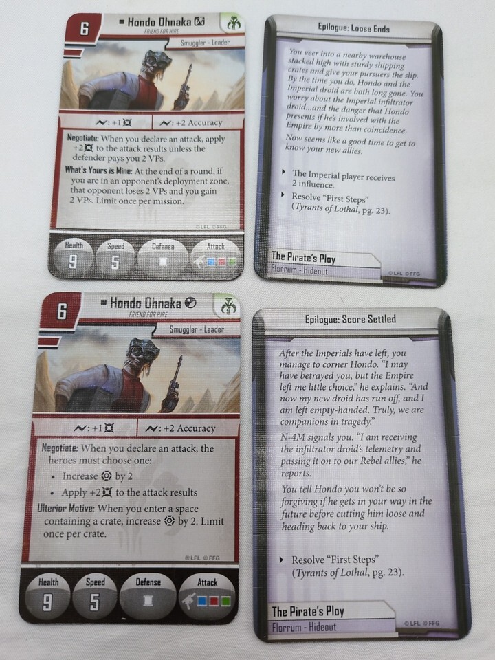 - (4) Star Wars Imperial Assault Hondo Ohanka Villain Pack Cards