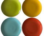 (4) Tag Ceramic Plates Dessert Appetizer 8? Retro Frutiger Aqua Green Orange Yellow