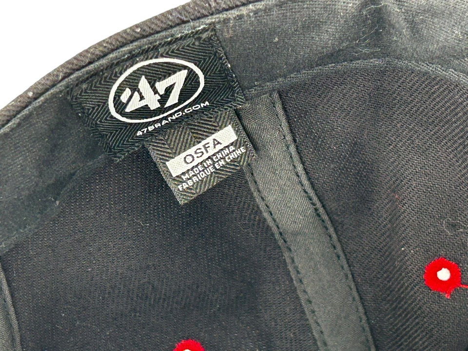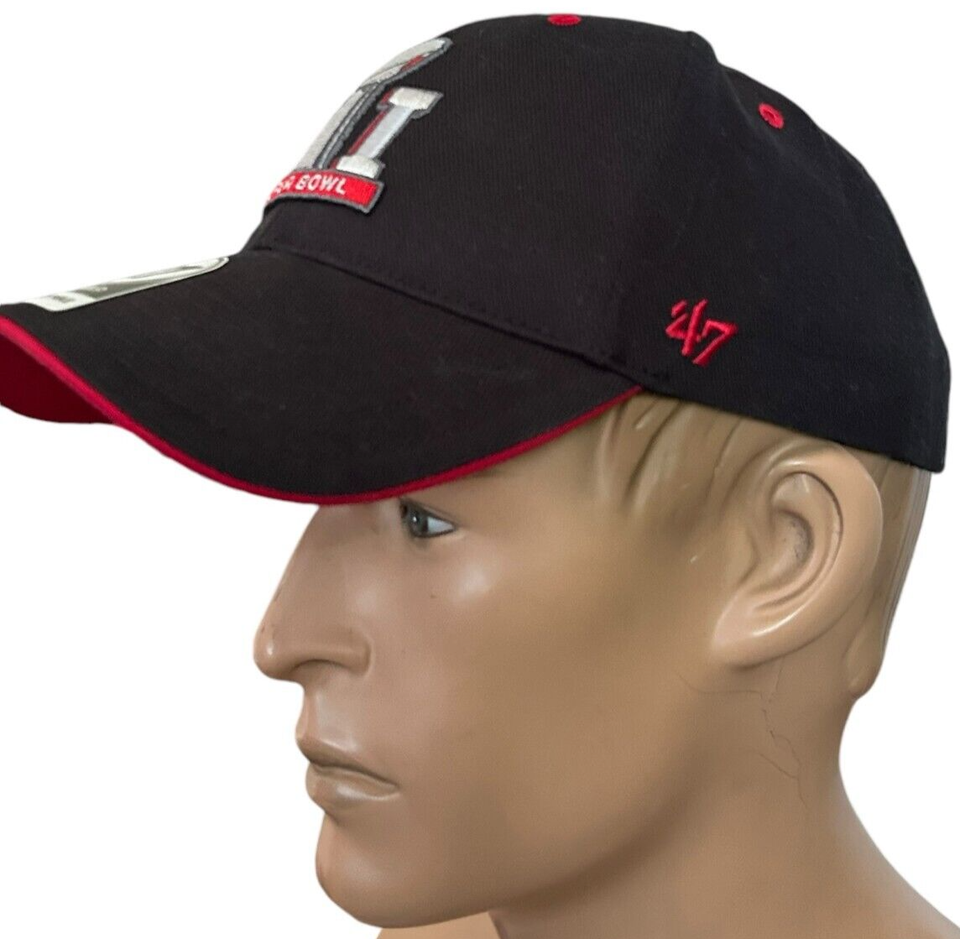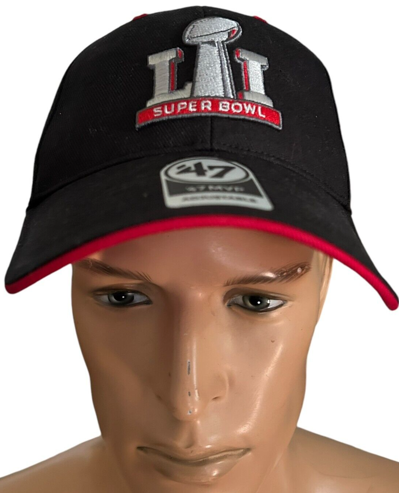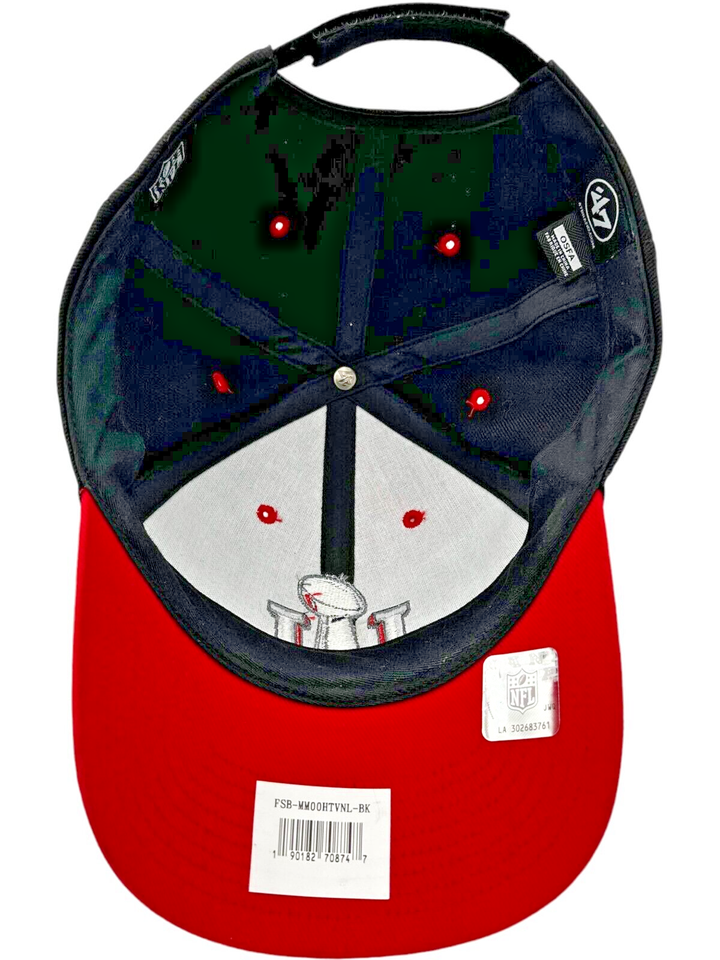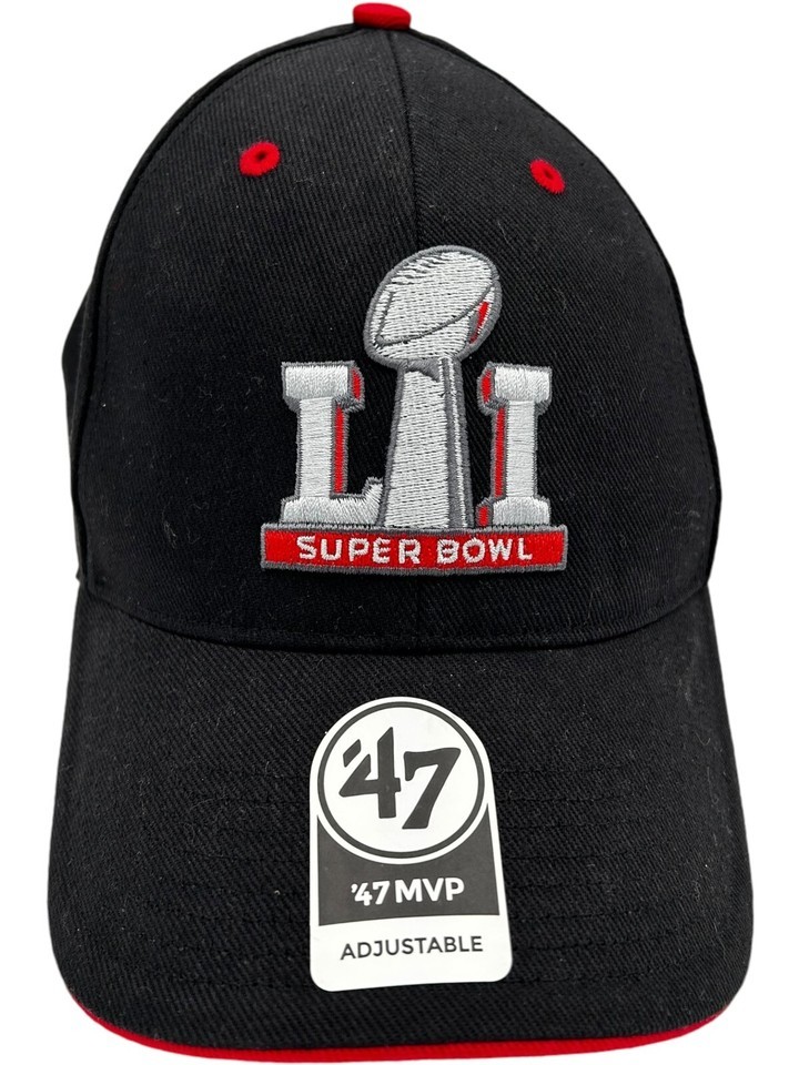 - '47 Brand Super Bowl 51 Authentic NFL adjustable black hat w/red stripe on bill