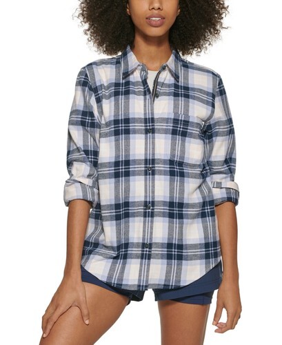 - $49 Bass Outdoor Plaid Windsor Stretch Flannel Button-Down Shirt Medium
