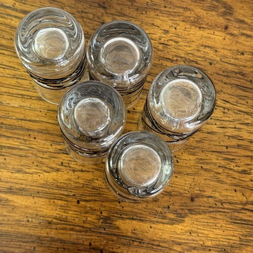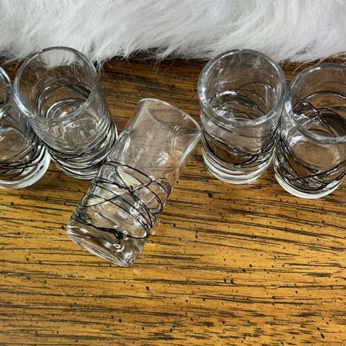 (5) Glass Vintage Shot Glasses Barware Mosaic Silver Crackle