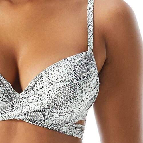 - $80 Coco Reef Enrapture Underwire Wrap Bikini Top Snakeskin Print Size 36/38E