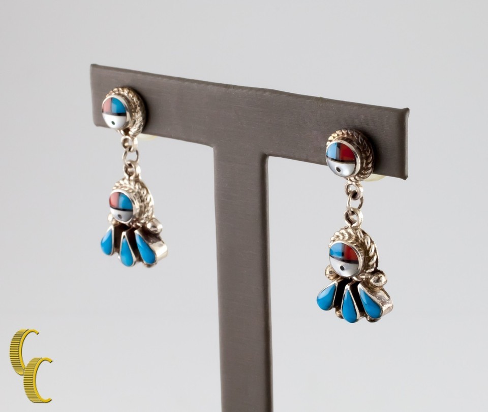 .925 Sterling Silver Coral Turqouise Dangle Earrings